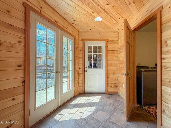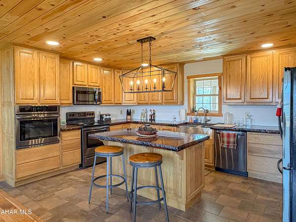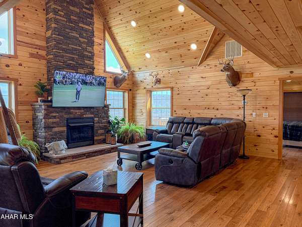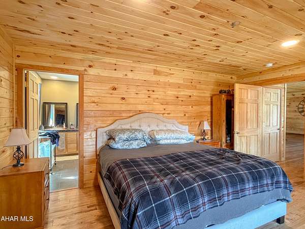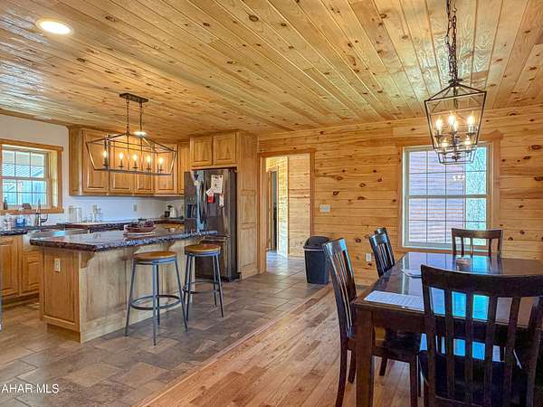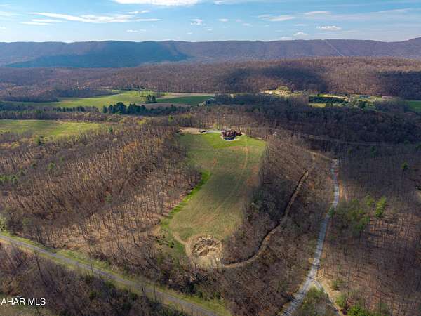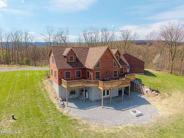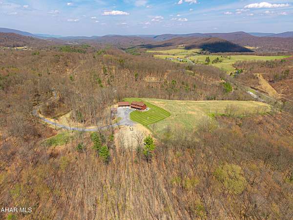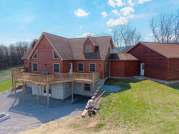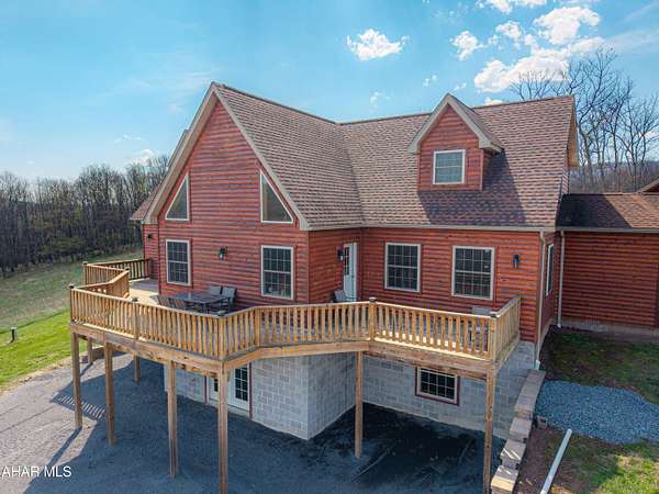 Escape to your own private mountain retreat with this absolutely beautifully maintained and well built log-sided home resting on 29.88 acres. A generous entry foyer welcomes you into a stunning great room featuring a cathedral ceiling and a striking stacked stone fireplace--ideal for relaxing or entertaining. The spacious kitchen is equipped with stainless steel appliances, island/breakfast bar, and flows seamlessly into the dining area. The primary suite offers a peaceful retreat with a walk-in closet and a well-appointed bath featuring a soaking tub with stone surround, double bowl vanity, and separate ceramic tile shower. There is a mud room and a convenient main level laundry room with a half bath. One the second level you will find a cozy loft area perfect for an office, reading area, or just enjoying the views above the great room. Three additional bedrooms and a full bath provide ample space for family or guests. The newly partially finished basement includes a ground-level walkout and is already rough-plumbed for an additional bathroom, offering excellent potential for expanded living space. Comfort is ensured year-round with a heat pump and central air, plus electric hot water radiant floor heat on both the main level and basement. Warm and inviting blends of hickory hardwood and ceramic tile floors, solid six panel doors, recessed lighting throughout, all complemented by knotty pine walls/ceilings, and drywall for a perfect balance of rustic charm and modern appeal. Step outside to enjoy the large covered front porch or rear deck, perfect for taking in the breathtaking mountain and sky views and in this serene, private setting. ATV, hike, hunt, or just enjoy wildlife on your OWN land. Spacious three-car attached garage with 12' x 40' loft and a 20' x 24' outbuilding allowing for all your storage needs for vehicles, boats, or toys. Property is located close to State Game lands, the H&BT rails to trails, the Juniata River, and less than one hour from Lake Raystown. This well-cared-for property offers the ideal combination of space, comfort, and natural beauty--don't miss your opportunity to own this exceptional home or retreat in beautiful Bedford County, PA.