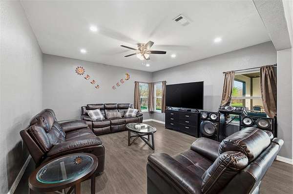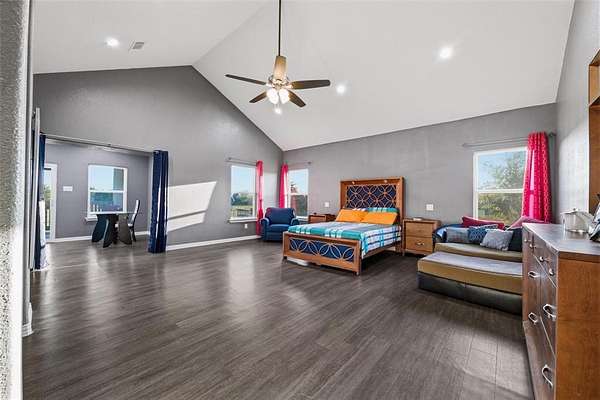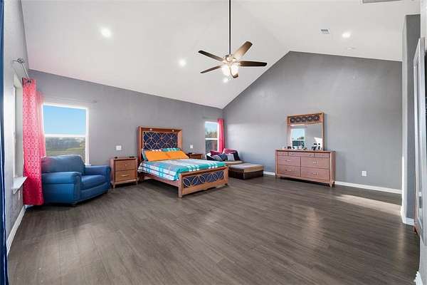 This 2020 modern farmhouse on 2.9 unrestricted acres in Quinlan offers the flexibility buyers are looking for. With 3,200 sq ft, all bedrooms are upstairs along with a spacious bonus area perfect for a game room or a second living space.
