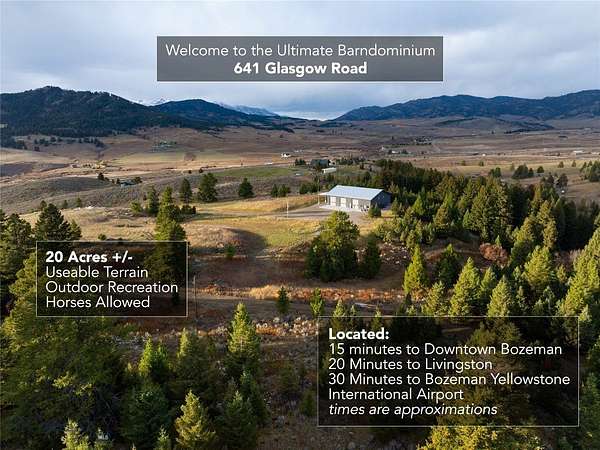 Experience Montana living at its best with this versatile 20-acre +/- property located just 15 minutes from downtown Bozeman, 20 minutes from Livingston, and 30 minutes from Bozeman Yellowstone International Airport. Combining functionality, comfort, and wide-open space, this property offers both a turnkey barndominium/shop and room to build your dream home. The impressive 60' x 80' steel structure (completed in 2024) features metal roofing and siding for long-lasting durability. With 3 14' high bay garage doors, and a roof that is 26' high, you'll have plenty of room to store your MT toys. Inside, you'll find approximately 60' x 60' of shop space and 60' x 20' of well-appointed living quarters, complete with radiant floor heating across four zones and spray foam insulation for year-round efficiency. Above the living area is another 60'x 20' "loft" space, perfect for additional storage or a bonus room, while RV hookups are available both under the carport and inside the shop for maximum flexibility. Extensive upgrades within the past year make this property move-in ready-improvements include a full kitchen buildout (custom cabinetry, quartz countertops, Bosch dishwasher, Samsung induction oven, Samsung air fryer microwave, Samsung refrigerator), motorized blinds, a security/video surveillance system, exterior lighting, new paint, regraded driveway, concrete pads, irrigation system, frp panels (water and fire resistant), and slat wall for flexible storage. Please see attached sheet for full list of upgrades as it is too extensive to list here. Unlike many nearby parcels, this land is remarkably usable with gentle terrain, making it ideal for outdoor recreation, building expansion, having horses, or simply enjoying the open space. The current owner often runs his dog across the property from an ATV, taking full advantage of the open, accessible landscape. With light covenants/zoning a new owner has plenty of options on how to best use the property to their liking. Whether you're looking for a fully functional workshop, a place to store your toys, keep horses, a modern living space, or a foundation to build your Montana dream home, this property offers endless possibilities in an unbeatable location.