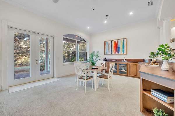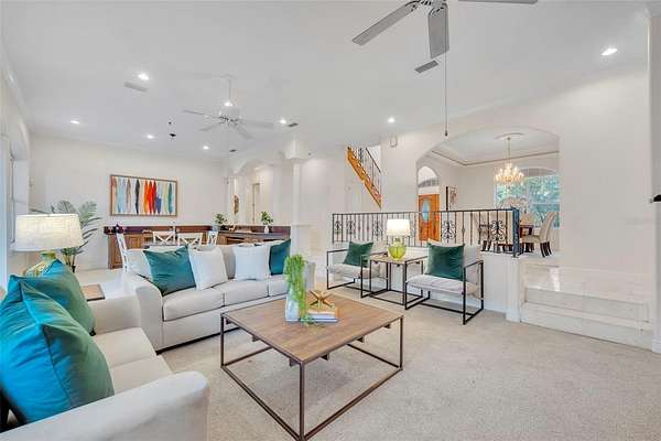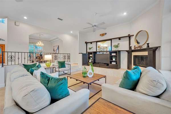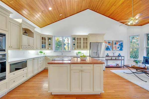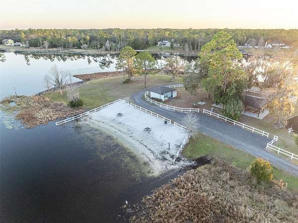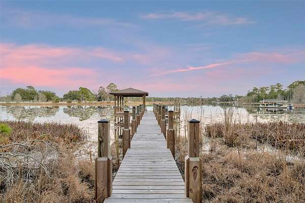 Welcome to your private waterfront estate in the guard-gated community of Seminole Woods in Geneva, where five private acres meet the convenience of being just outside Oviedo. Situated along skiable Buck Lake, this 4,000+ square foot brick residence offers timeless architecture, generous living spaces, and the kind of privacy that is increasingly rare. A sweeping drive and mature oak canopy lead to the stately brick facade and welcoming covered front porch. Inside, the grand foyer showcases a striking wood staircase with custom wrought iron detailing and balcony overlook, setting the tone for the craftsmanship found throughout. The heart of the home is the expansive kitchen, highlighted by a warm wood plank ceiling, custom cabinetry, generous center island, and abundant natural light. It opens seamlessly into inviting living spaces designed for both everyday comfort and effortless entertaining. With four bedrooms plus a dedicated office and bonus room, the floor plan offers flexibility for work, guests, or multi-generational living. The primary suite serves as a private retreat, complete with its own fireplace and spacious en-suite bath. Outdoors, lakefront living takes center stage. A private dock with fishing platform and covered boat lift extends over beautiful Buck Lake, inviting boating, skiing, fishing, and unforgettable sunset views. The five-acre setting provides space to roam while maintaining a peaceful, natural backdrop. Additional features include a three-car garage and access to Seminole Woods' 24-hour guard-gated entry, lakefront park, pavilion, equestrian and hiking trails, and cherished annual community events. This is more than a home...it is estate living, lakefront serenity, and everyday convenience in one exceptional property.
