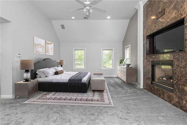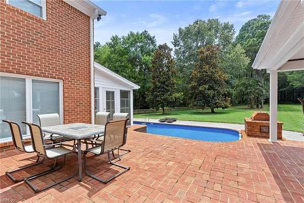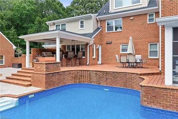 Stunning property situated in the heart of Great Bridge on 3 acres! Brand new gourmet kitchen with 6 burner Cosmo range, additional prep sink, new top of the line appliances and custom cabinetry. All new paint, flooring and completely renovated baths and stairwells on first two primary living levels. Bonus third floor complete with full bath! HUGE primary suite complete with fireplace, fantastic walk-in closet and beautiful new bath. The detached 3.5 car garage includes a garage apartment with kitchenette and full bath. New windows, roof, gutters, soffits and pool liner. Absolutely amazing opportunity to secure this gorgeous, move-in ready property. Awesome enclosed patio with hot tub as well as an outdoor kitchen/bar area. This is an entertainer's dream! See it today before it is SOLD!