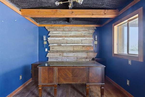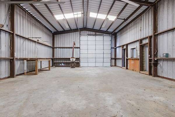 The property includes a 3,076 sq ft shop with an office and bathroom, providing plenty of space for equipment, storage, or a workspace. There is also a pond on the property that can be used for livestock and attracts wildlife.