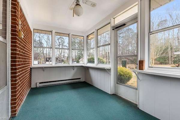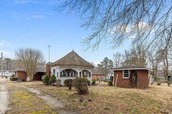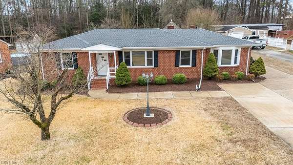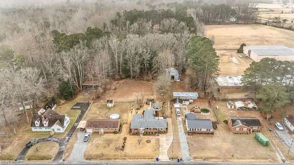 First time ever on the market! This beloved property is ready to welcome its next owners. Offering a rare combination of acreage and convenient access to all that Suffolk has to offer, this home provides both space and flexibility. The residence features 3 bedrooms, 2 full baths, two living areas (one with a gas fireplace), a flex space, a breakfast area, and a glassed sunroom overlooking the picturesque backyard. Original oak hardwood floors run throughout much of the home, adding warmth and character. The primary suite has been thoughtfully expanded to include a full bath and two spacious walk-in closets.Set on 4.32 acres, the property offers endless possibilities for gardening, outdoor recreation, and storage or workshop needs. Outbuildings include an oversized Quonset hut, a pole barn, and a brick storage building. Enjoy peaceful country living with the convenience of nearby shopping, dining, and easy highway access to explore all of Hampton Roads.