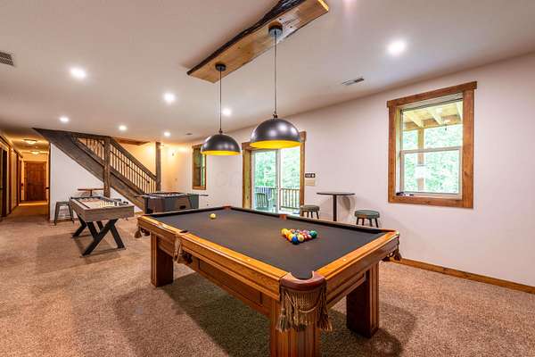 Over $180,000 in gross revenue in 2025--this is a rare opportunity to own a proven, high-performing short-term rental in the heart of Hocking Hills. Set on 6 private wooded acres, this 4,600 sq ft luxury lodge offers the scale, layout, and amenities that consistently drive strong bookings and premium rates. Designed for large-group stays, the home features multiple gathering spaces, a private movie theater, a full game room with pool table, shuffleboard, and foosball, plus spacious sleeping arrangements that maximize occupancy and flexibility. Outdoor spaces elevate the experience even further, with a covered hot tub overlooking peaceful wooded views, a fire pit for evenings under the stars, outdoor dining areas, and a half basketball court--features that directly translate into five-star reviews and repeat guests. Ideally located just minutes from Hocking Hills' most visited attractions, including Old Man's Cave, Cedar Falls, and Ash Cave, this property offers the balance of accessibility and seclusion that today's buyers and guests are actively seeking. High-performing properties with this level of square footage, acreage, and established income are increasingly difficult to find--especially ones that are already operating and delivering results.
