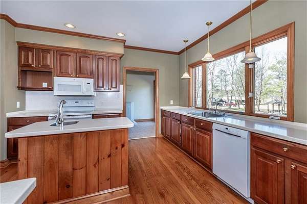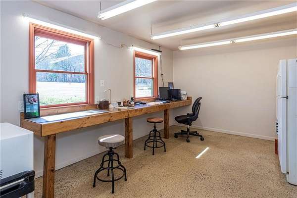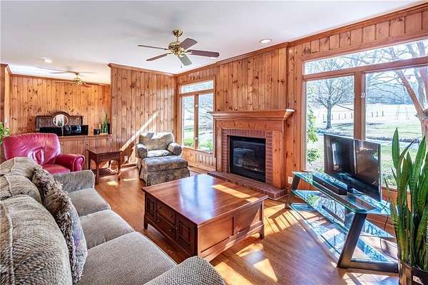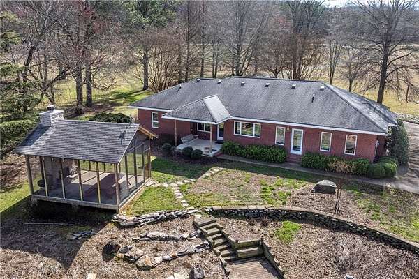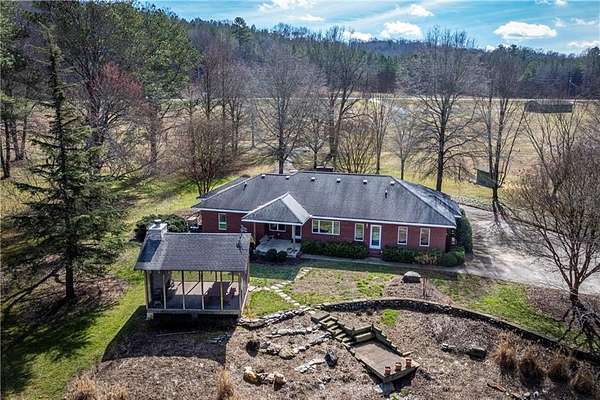 33+ acres of completely usable land with 1,700 feet of Talking Rock Creek frontage - a rare opportunity in the North Georgia mountains. Previously operated as a produce farm. This property is perfectly suited for farming, gardening, equestrian or a cattle operation, plus the ability to have a family compound. Simply add fencing to create your ideal horse or cattle farm. The custom-built all-brick ranch showcases quality craftsmanship throughout. An open floor plan features a wall of windows overlooking the wide-open pastureland, filling the home with natural light and scenic views. The spacious family room offers a fireplace flanked by double windows and flows seamlessly into an open office area. The kitchen is designed for both function and beauty, complete with an island, with bar seating, generous counter space, and a sink perfectly positioned beneath a wall of windows overlooking the picturesque acreage. Outside you will love the screened pavilion with a stacked stone wood-burning fireplace the perfect place to relax and take in the peaceful surroundings. A large pole barn provides enclosed storage along with covered space for tractors and equipment. An additional building includes a workshop plus a section featuring a full bath and office space ideal for a future apartment or guest quarters. There is also a former produce stand building with a full bath that could easily be converted into a 1,500 square feet of living space with the option for its own dedicated driveway. The wide, grassy fields are breathtaking and beautifully maintained, offering endless possibilities. All of this is conveniently located just minutes from shopping, the hospital, and less than two minutes to Highway 515 - combining privacy, productivity, and convenience in one exceptional property.