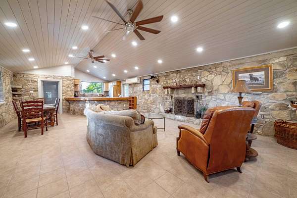 Pecan Grove Ranch | +-400.31 Acres | Lampasas County, TX A rare Live Water Hill Country gem with over 1,375 ft of both sides of year-round, spring-fed Lucy Creek, two concrete dams, and four stock ponds--three with an engineered overflow system. Over 5,900 ft of paved County Road 3420 frontage offers subdivision potential. Gently rolling terrain with improved/native grasses, terraced fields, and a mix of oaks, pecans, elms & juniper. Historic 2,876+- SF stone home (built 1875) with restoration potential, barns, storage sheds, two active water wells, and cross-fencing. Recreational features include a 989+- SF Creekside cabin, 1,800+- SF pavilion with restrooms, RV hookups, and excellent hunting, fishing, swimming, and more. Strong wildlife population and 1-d-1 ag exemption in place (cattle). Ideal for ranching, recreation, short-term rental, or event venue use. All owned minerals convey.