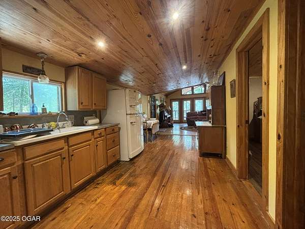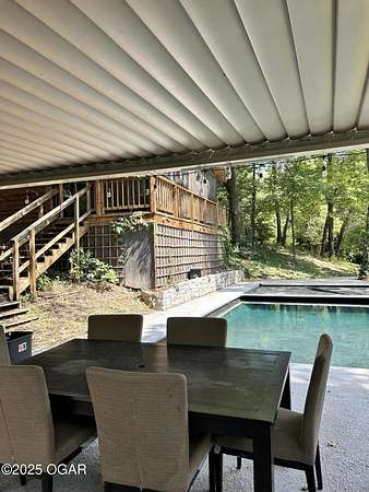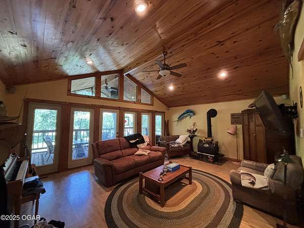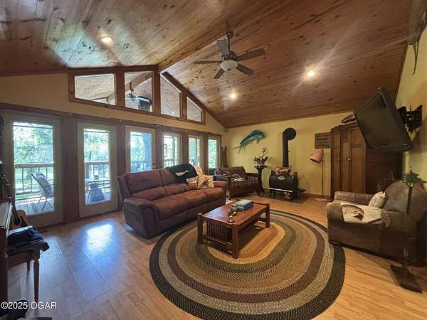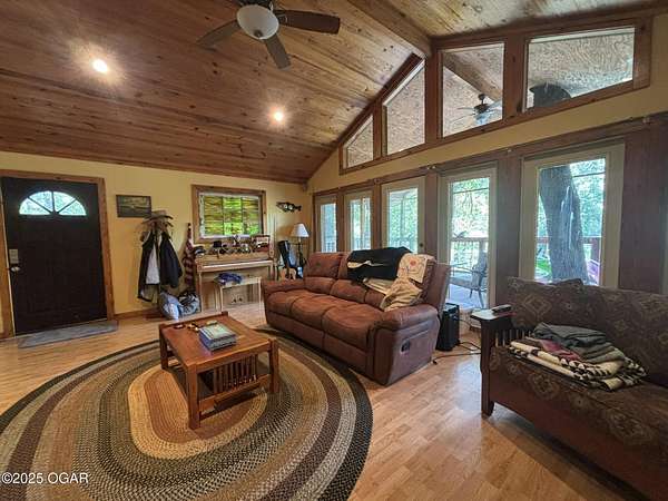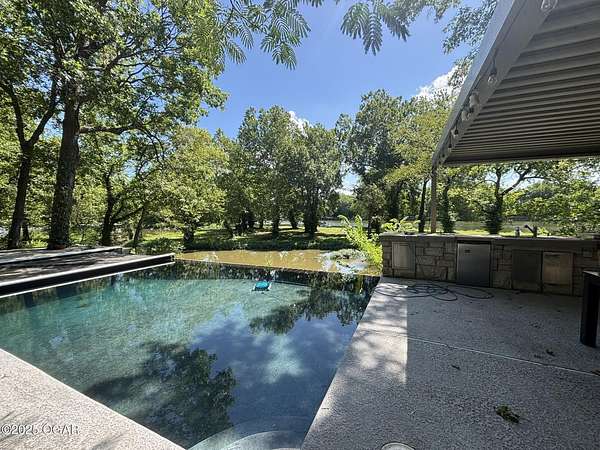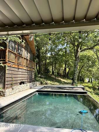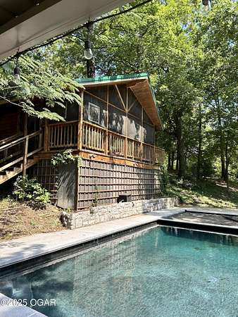 Est $2,057/moWaterfront oasis on 4.5 acres- dock, pool, cabins and shop. Escape to this one-of-a-kind 4.5 acres property on Spring River, featuring a main cabin with a spacious screened porch, infinity edge pool and outdoor kitchen overlooking the water. Enjoy a floating cabin, a separate guest cabin and a covered boat dock for direct river access. A detached 3 bay garage/shop and carport complete this rare offering-perfect for private living, entertaining, or a short term rental!