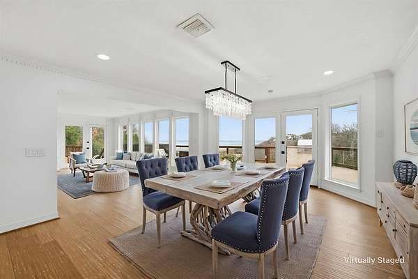 Step inside to witness the breathtaking lake views that greet you from every room, providing a constant reminder of your scenic surroundings. The well-appointed kitchen serves as the heart of the home, featuring a spacious island and a gas cooktop, perfect for culinary enthusiasts and casual cooks alike. Its open layout ensures seamless entertainment options, leading to a cozy living environment.