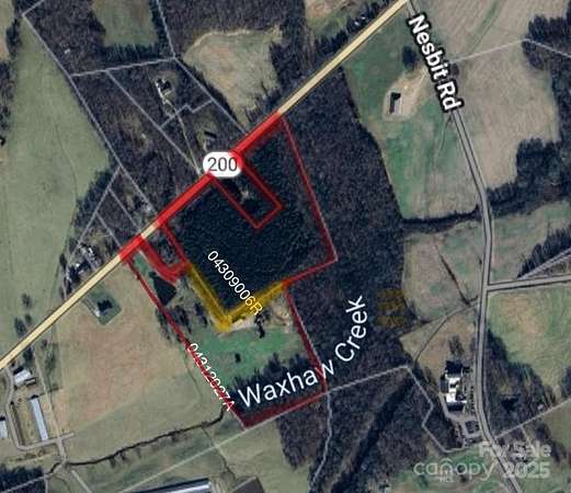 Rare opportunity to own approx. 30 acres in Waxhaw with excellent road frontage along Lancaster Hwy. This beautiful property includes two parcels 04312027A & 04309006R being sold together with a perfect mix of cleared and wooded land. A peaceful pond welcomes you at the entrance, with a private driveway leading to the middle of the property where a large barn sits offering endless potential. Roughly half the acreage is cleared, while the rest features mature pine trees and natural privacy. A small creek runs along the back of the property with a bridge allowing access to the other side-perfect for exploring, riding, or future use. Whether you're planning to build a private estate, family compound, horse facility, event venue, or neighborhood this land offers endless possibilities. The property previously perked for septic, though the permit has expired. With usable land, scenic views, and high visibility, this is an ideal setting for residential, recreational, or investment use.