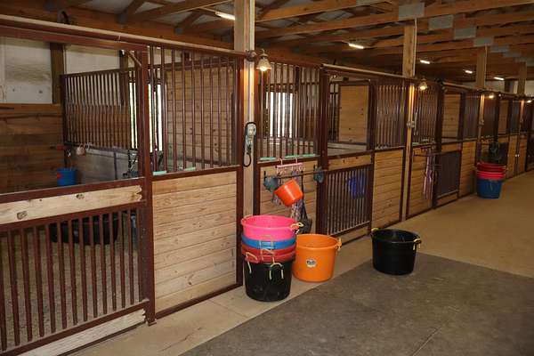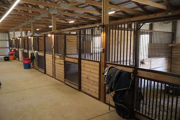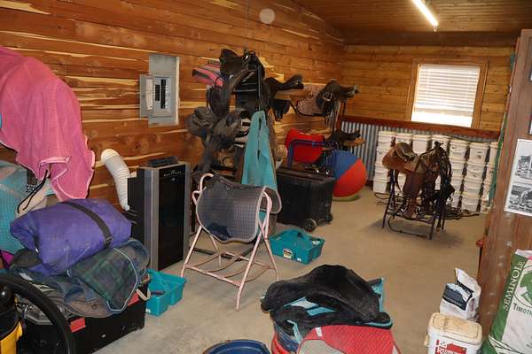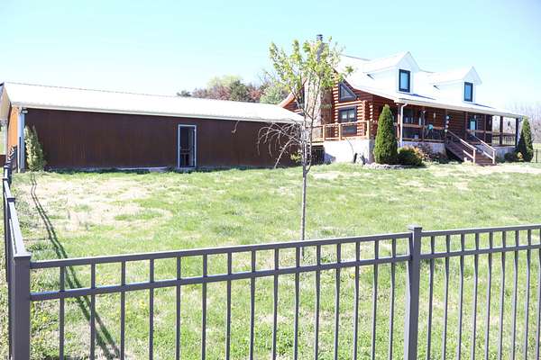 Equestrian farms this nice don't come available that often. This 24.6 acre farm has it all. Super nice horse barn with seven 12x14 custom stalls with six turn outs. Custom heavy duty steel Dutch doors on each stall. 8 ft. overhang on back and 10 ft on front. Large wash bay with hot and cold water. Nice barn office and tack room with heat and air stand alone unite. Ask about the great income producing possibilities of taking on current clients and boarders. Gated entrance. Five total paddocks with 12x18 run -in and a 12x24 run-in. Paved and gravel drive. 60x117 outdoor arena. Permanent dry lot. 4 car detached garage. 30x40 work shop. 24x32 storage building. Covered RV shed with built in deck with electric , water and waste water hook ups. Unfinished basement great for expanding. And by the way it has a really nice log home with fireplace and newer Anderson windows. Large covered front porch.