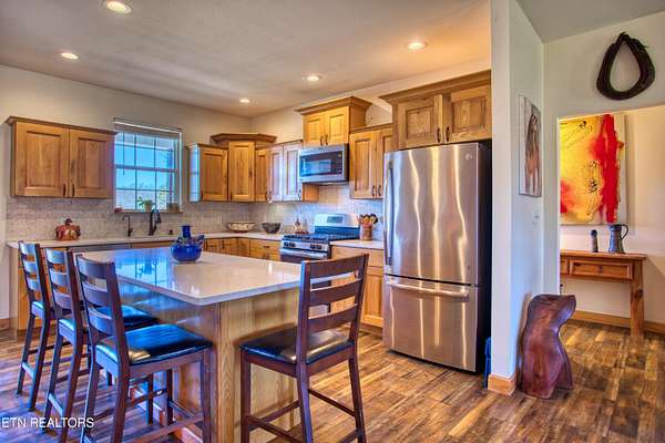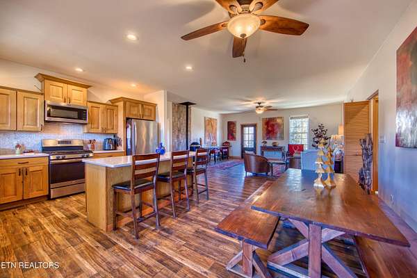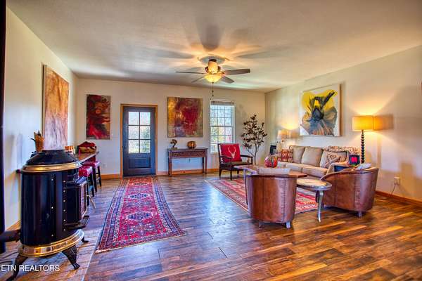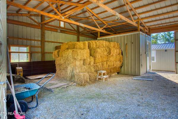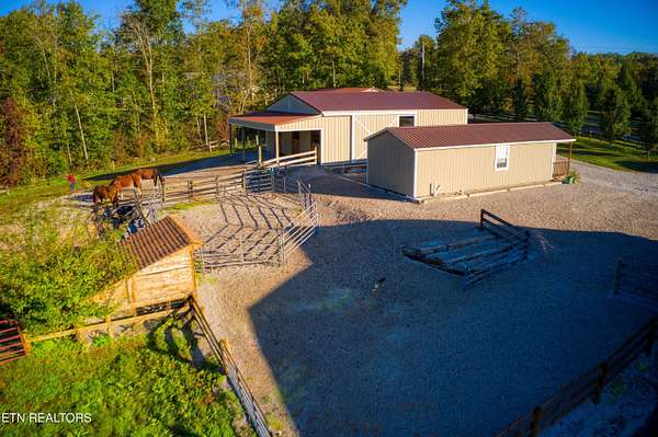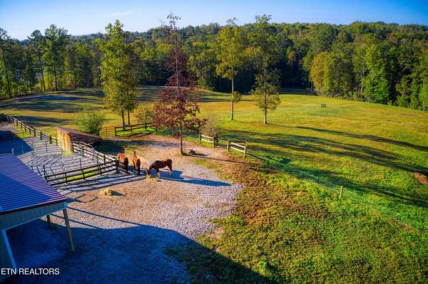 Turn Key Equestrian 7 Acre property at the END of the ROAD. 3 bed 2 bath Split Living home. 30x40 foot 3 stall BARN STRUCTURE+TACK ROOM + room for 200 BALES of hay plus turnouts. 14x40 Amish built Artists Studio/Workshop Shed with 1/2 bath so this is your AIR B&B or guest cabin opportunity. 3 car carport. 7 Acres of Slightly rolling MATURE pasture land. FENCED Dog Run in the back yard. You have 3 access points onto the trail system including The back side of your property IS the 8-10 miles of community trail system & one of those trails will take you directly into the Big South Fork National Park with 220 miles of dedicated horse trails. Wood Pellet Stove for additional seasonal heat. ION reverse osmosis under kitchen sink system. generous sized Master walk-in closet. Eat in Kitchen with large kitchen island, ALL QUARTZ COUNTERS. High Speed Internet in this community.