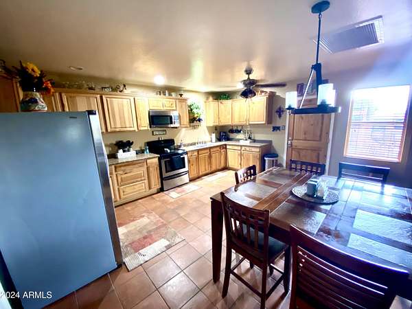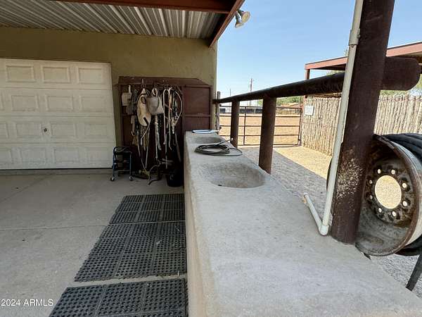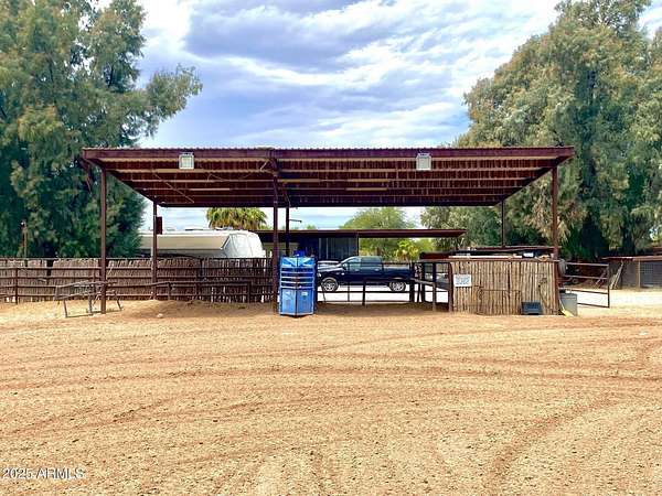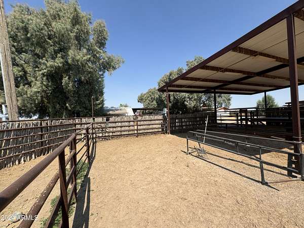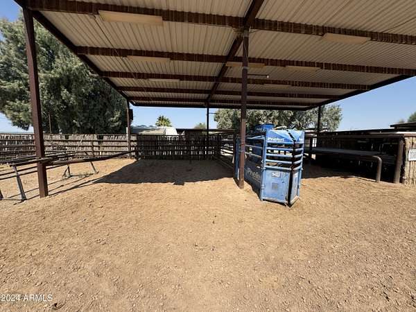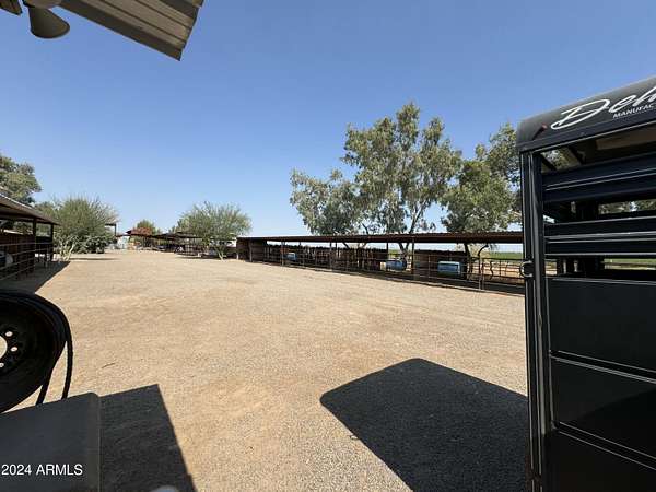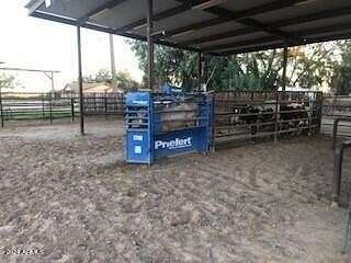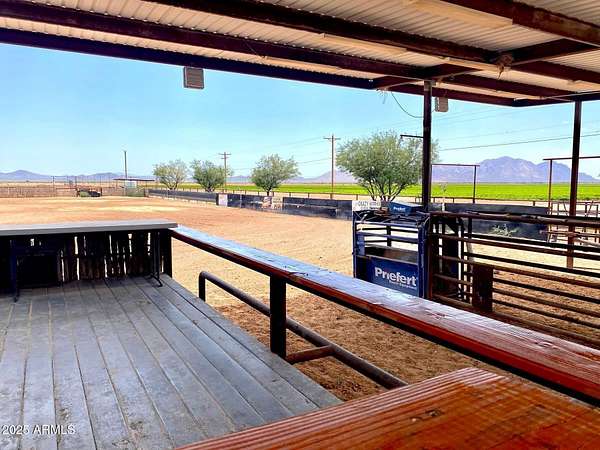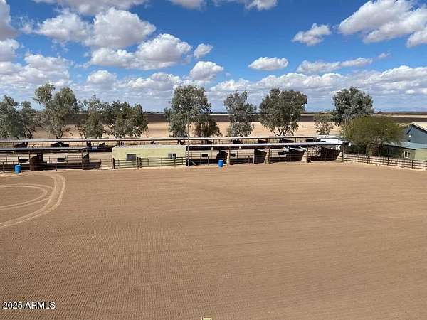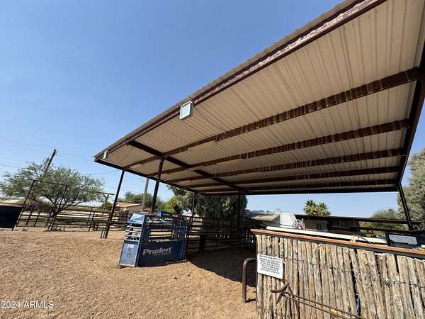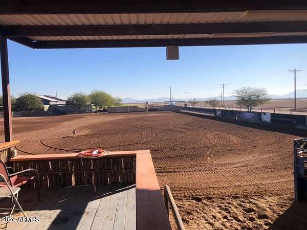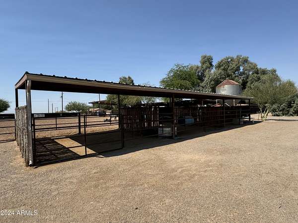 This property is truly a horse lover's dream with all the amenities you could possibly need. The barndominium styled home is perfect for comfortable living, while the bunk house casitas offer additional space for guests or renters. The outdoor living breezeways with a bar and fireplace are ideal for entertaining and enjoying the beautiful surroundings. The horse set up is top-notch, with 37 covered pipe horse stalls, a full-size roping arena, covered hay barn, workshop, and separate barn office. The 8 RV hookups make it easy to accommodate visitors, and the grounds keeper quarters ensure that everything is well-maintained. Don't miss this incredible opportunity to live the Yellowstone life on 17 acres of deeded & leased land w/ endless possibilities for both work and play. Home has new hurricane rated roof! Arena is 100x200, has newer pneumatic remote control shoots, 30 foot steel walled round pen, the barn has finished drywalled and air conditioned office, private owner tack room, All stalls are 100% covered, boarder 3 wash racks, dog kennels, boarder tack and grain rooms, mechanical shop. 14 acre turn-out as well as additional covered stalls not listed above and covered hay bays large enough to fit several squeezes of hay. Dont let this opportunity getaway the property is minutes from the freeway, in the new Pinal County Corridor of trade, business and progress, perfect for the high tech owners who want extra income, and a great work life balance.!!