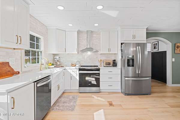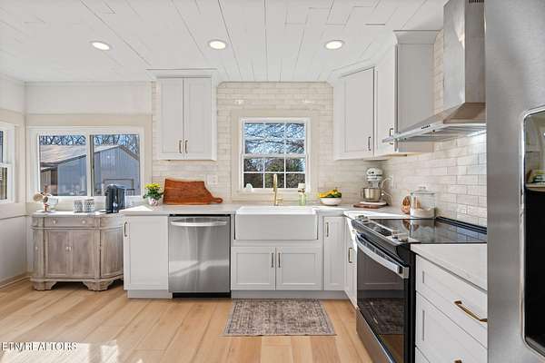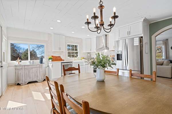 Welcome to 642 Sinking Springs Road in Clinton, Tennessee-an updated farm cottage nestled on 4.72 acres with over 500 feet of frontage along beautiful Hinds Creek. This 2-bedroom, 1-bath home offers 1,248 square feet of comfortable living space, plus an additional room that could easily serve as a home office, bonus room, or potential extra living space depending on your needs. Inside, you'll find thoughtful updates including new flooring, new kitchen cabinets, and updated countertops. The spacious kitchen and inviting living room create a warm, functional layout perfect for everyday living. The home blends modern improvements with classic cottage charm, offering move-in-ready comfort in a peaceful country setting. Outside is where this property truly shines. A massive 1,500 square foot insulated concrete detached garage provides exceptional versatility-ideal for a workshop, equipment storage, hobby space, or future conversion to additional living quarters. The exterior utility room is already plumbed and ready for an additional bathroom, making expansion or guest accommodations a real possibility. The 4.72-acre tract is partially cleared and partially wooded, stretching back toward the creek for added privacy and natural beauty. With over 500 feet of Hines Creek frontage, you can enjoy the relaxing sound of flowing water while kids play, animals roam, or you unwind by the bank. Whether you envision a mini farm, homestead, or simply room to breathe, this Anderson County property delivers space and flexibility. Conveniently located just minutes from I-75, Oak Ridge, Knoxville, and Norris Lake, you'll enjoy country living without sacrificing accessibility. This property is ideal for families, hobby farmers, or buyers looking for acreage with creek frontage and substantial outbuildings. Opportunities like this are hard to find. Schedule your private showing today and explore the potential of 642 Sinking Springs Road. Buyer to verify all information. Square footage, utilities, school zones, and lot boundaries to be independently verified by buyer/buyer's agent. Info deemed reliable but not guaranteed.