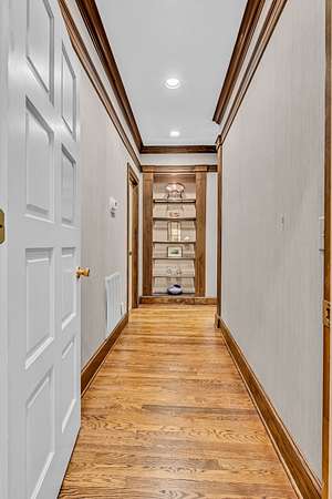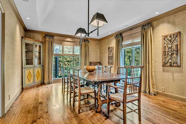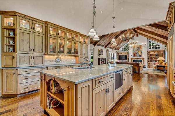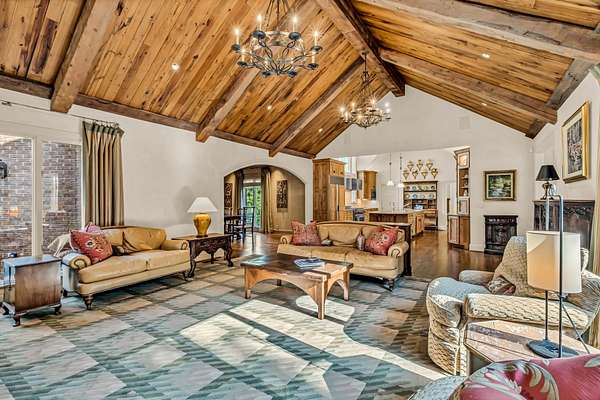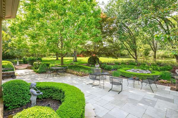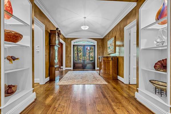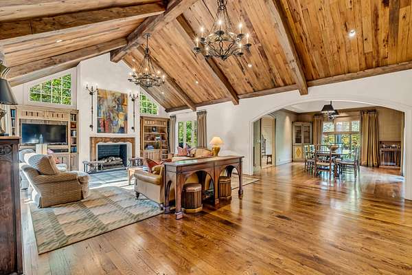 Tucked into a quiet cul-de-sac with no thru traffic in coveted West Meade, this one-owner estate offers exceptional privacy on 2.4 park-like acres. This stately one-level home blends thoughtful craftsmanship and timeless architecture. Antique oak floors run throughout, complemented by elegant features such as a barrel ceiling in the foyer, a coffered ceiling in the formal living room, and a vaulted family room ceiling constructed from antique hickory with antique hickory beams.