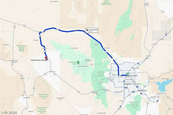 NW on Pahrump Valley highway (160), Left on N Leslie St, Right on N Mountain View, Left on Alsina Ln, Left on Alcove Ln, Parcel on Right.