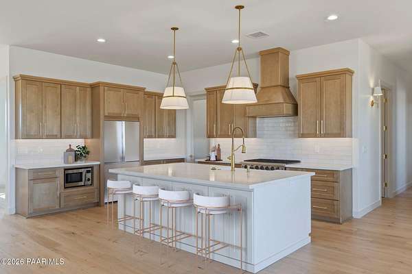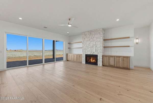 Absolutely Stunning Custom Residence behind the gates in Copperfield by Hader Homes - featuring Panoramic Views out Front and Back. Excellent and Efficient Floor Plan with Open Kitchen / Great Room Concept. 16 Foot Sliding Glass Door in Great Room with Tons of Natural Light which gives an Indoor/Outdoor Experience. Premium Quartz - Upgraded Zuri Countertops by Del Terra throughout. Standout Luxury Owner's Suite featuring a private reading nook/sitting area, Spa inspired Bathroom including a Resort-Style walk-in shower enclosure with soaking tub, built-in linen closet for added storage, extra-long vanity with toe kick lighting, framed mirrors, and decorative lighting. Custom Lighting Package throughout. Engineered Hardwood flooring (Provenza Series). Base Cabinetry with floating shelves at Fireplace. Well appointed Interior Finishes and Colors. Extended Pavers at Rear Patio. HUGE EXTRA DEEP 3 CAR GARAGE PLUS WORKSHOP/STORAGE AREA...