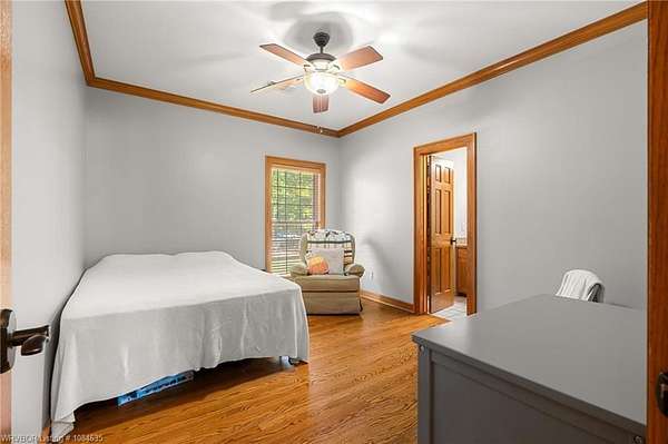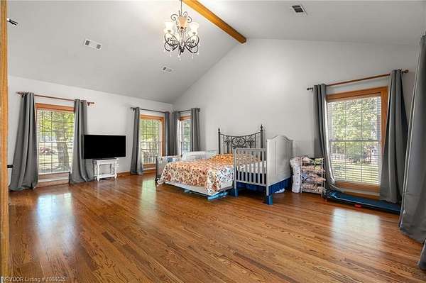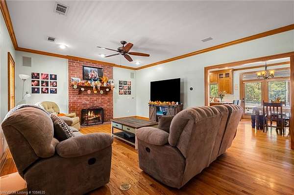 Cozy up in this charming brick country retreat! Located just outside of town this property provides a peaceful retreat while still being conveniently close to local amenities. This home boasts soaring cathedral ceilings, recessed lighting, and crown molding create a warm atmosphere. The fireplace is the perfect spot to unwind, while the master suite boasts a spa like bath with whirlpool tub and french doors leading to the deck. The solid wood flooring throughout the house adds a touch of sophistication to each room. Enjoy outdoor living on the spacious deck, or splash into fun in the above ground pool. The 2 car garage and central vacuum system make maintenance easy. With a fenced in backyard and gorgeous scenery this home is perfect for families and entertainers alike!