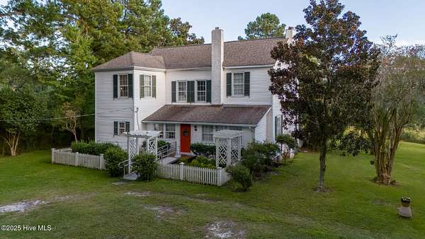 A true Wilmington landmark - timeless, historic, and recognized worldwide as the real ''Dawson's Creek House.'' This waterfront home on Hewlett's Creek represents a rare combination of architectural history, coastal lifestyle, and cultural legacy. The home rests on 1.7 private acres framed by ancient live oaks, magnolias, and pines. The residence features four bedrooms, three & half baths, a large eat-in kitchen, formal dining room, and a spacious living room. French doors open to an expansive screened front porch that overlooks the water, an ideal setting for quiet mornings, family dinners, and views of the tide moving in and out. Outside, the property offers 134 feet of direct water frontage with a private pier and floating dock, providing easy access to the Intracoastal Waterway and Wrightsville Beach by boat. The home's enduring appeal reaches beyond its architectural character. It served as Dawson Leery's home in all six seasons of the hit television series Dawson's Creek. Its white facade, wide porch, and familiar dock became central to the show's story, an instantly recognizable symbol of coastal life and coming-of-age nostalgia. Beyond its Hollywood legacy, this home has always been a gathering place for family and friends. Evenings on the porch, fireworks reflected in the creek, and moonrises over the water are memories that have defined life here for generations. The Wilmington Plain architectural style is evident in the home's balanced proportions, tall ceilings, and light-filled rooms designed to capture coastal breezes. Though being sold as-is, the home remains strong in character and structure, offering the next owner the opportunity to preserve and personalize a truly historic property. Located at the end of a quiet lane just minutes from Wrightsville Beach. this is a one-of-a-kind opportunity to own one of Wilmington's most beloved waterfront homes, where history, heritage, and cinematic legacy come together.