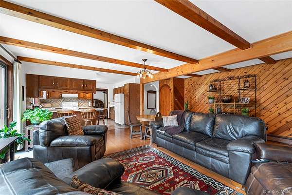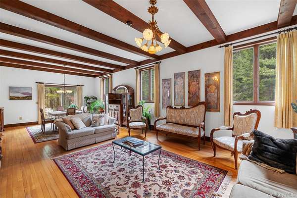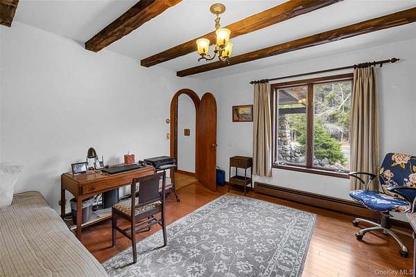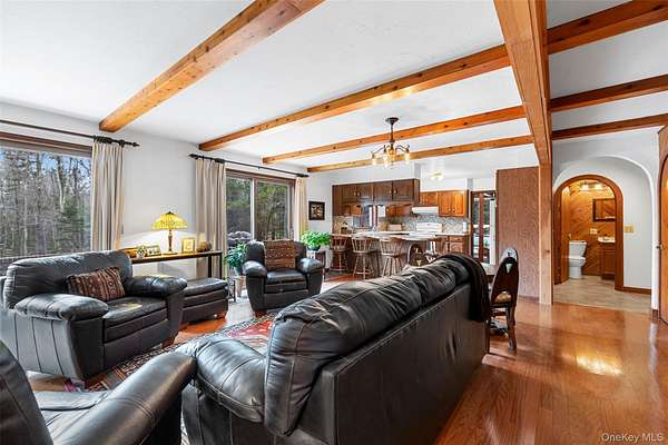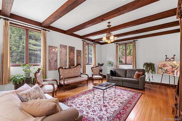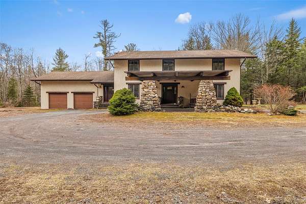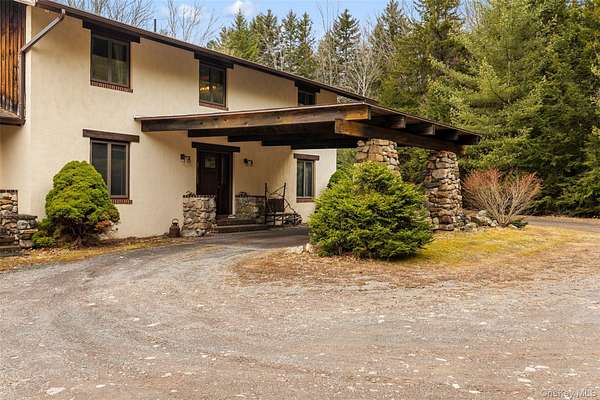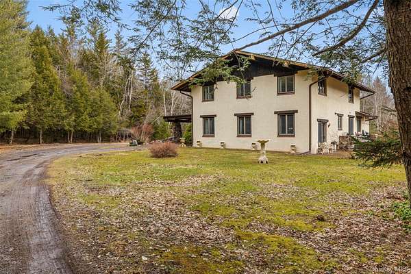 Welcome to Casa Solara - a custom-built California Mission-style masterpiece nestled on over 14 private wooded acres in the heart of Tannersville. Just moments from Main Street and beloved Hunter Mountain, this one-of-a-kind 4-bedroom, 3-bath estate offers the perfect blend of mountain serenity, timeless design, and walkable village charm. As you wind up the private, wooded driveway, the trees part and the land opens up to reveal a breathtaking sight - Casa Solara, glowing with warmth and history. Anchored by a dramatic locally sourced granite fireplace and crowned by the home's centerpiece - a striking gallery room filled with natural light - every inch of this 3,600+ square foot retreat was thoughtfully crafted by the original owners with intention, soul, and vision. From intimate family memories to grand entertaining spaces, this home exudes a sense of both legacy and possibility. Whether you're curled up fireside after a ski day, gathering under the soaring ceilings of the gallery room, or sipping coffee with mountain views just outside your door, Casa Solara invites you to slow down and savor. Located just steps from Tannersville's charming Main Street - with restaurants, a grocery store, a golf course, and year-round festivities - and offering front-row views of Hunter Mountain's iconic slopes, this property is the ultimate upstate retreat or full-time sanctuary.