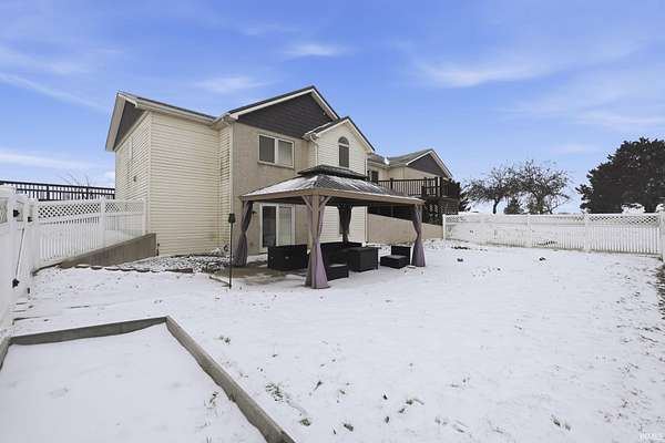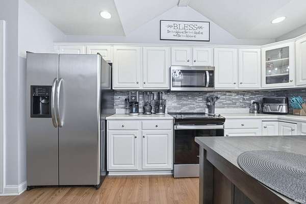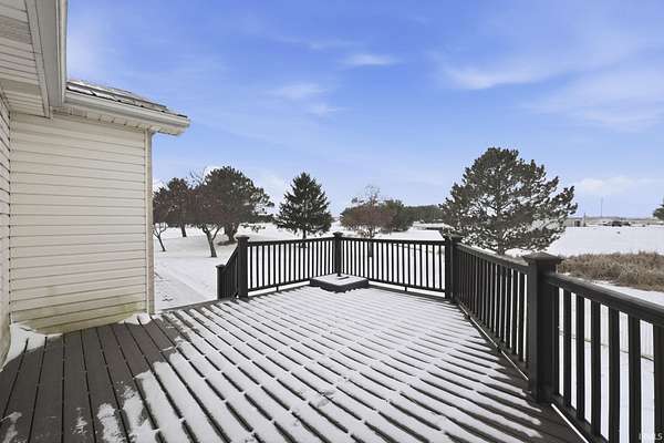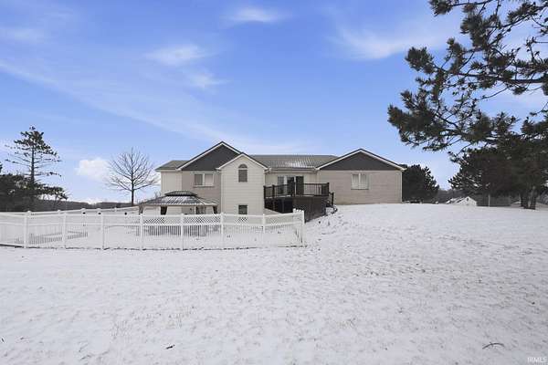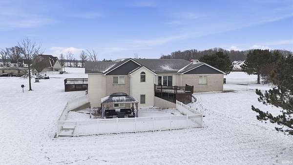 Enjoy the peace of country living on nearly 3 acres with this spacious ranch-style home offering approximately 3,200 finished square feet and NO HOA Fees. This home features 4 bedrooms and 3 full bathrooms with a well-designed, functional layout. The inviting entry opens to a stunning great room with vaulted ceilings, a propane gas-log fireplace, and a three-panel door and window combination that showcases beautiful country views from the deck. Approximately one-quarter of the pond is included with the property. The dining area, highlighted by a tray ceiling, flows seamlessly into the great room and kitchen. The kitchen offers abundant cabinetry, a pantry, and a comfortable eat-in area--perfect for everyday living and gatherings. The main-level primary suite includes a spacious bedroom, walk-in closet, private bath and a private deck with views of the pond. Two additional main-level bedrooms share a full bath, and the convenient main-floor laundry enhances the home's functionality. The walk-out finished basement provides a second living area with a family room, kitchenette, bedroom, full bath and a home gym and game room. The walk-out leads to a large patio with covered pergola and fenced yeard, creating an ideal outdoor entertaining space. The metal roof is aproximately 5 years old. The only utility bill is electric that runs $275-290/Mo. Seller is offering $5000 towards flooring or updates. This property offers space, comfort, and serene country views--an opportunity not to be missed.