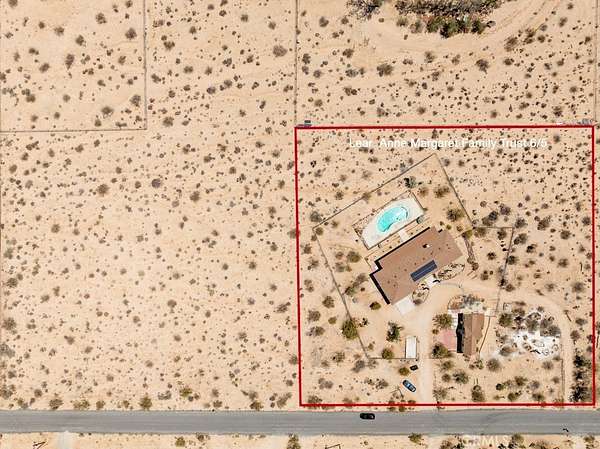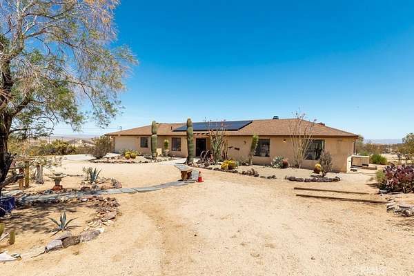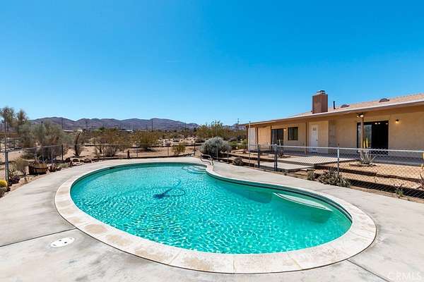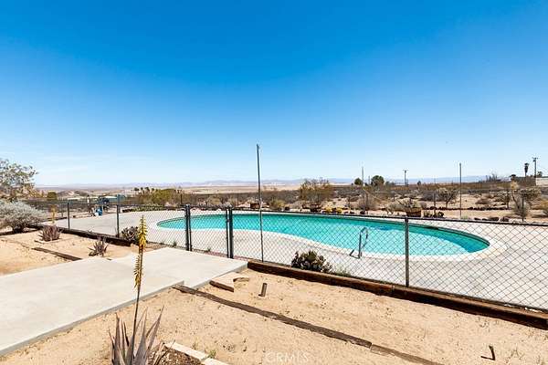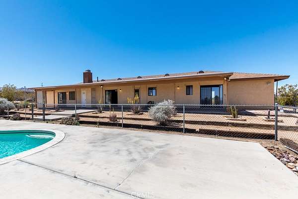 2 Single Family Residence dwellings and 3 additional lots on both sides totaling 6.48 acres. Step into over 2,917 square feet of "South Western Ranch Style" living, with a beautiful full size swimming pool and panoramic views of Indian Cove. The main dwelling contains a spacious 4 Bedrooms with 2 primary suites on opposite ends of the home with their own private entrances. 3 full baths including shower, shower tub combo, and deep jet tub with ample closets and storage throughout the home. The main house was built in 1990 by one of the original homesteader's of the area, and has been immaculately taken care of by the family. Dual Evaporative Coolers to keep this home cool in summer and New Central Heat with a Gas/Wood Burning Fire Place for those cold ambient nights. Also included New: roof, garage door opener, pool pump, and 2 gas water heaters. Finished 2 car attached garage with workshop and large mudroom for full size gas or electric laundry. Host dinner parties with a dreamy Chef's Kitchen, and dinning room that opens up to the front veranda. The second home, SFR/ADU, not attached, sits on this lot of 2.38 acres with its own private driveway, perfect for art studio or guests. The original structure was build in 1935 and includes its own septic tank. 1 bedroom, 1 bath, with beautiful wood paneling in a large kitchen, living room and breakfast bar. Minutes drive away on the same road to Indian Cove Campground where you can camp and hike into the Joshua Tree State Park with some of the most unique rock formations in the Hi Desert. Plus if you are interested in developing or purchasing the surrounding lots so others won't, please inquire. For Sale one lot 2.5 acres to the North and 2 lots to the south, one of which on the Hwy is zoned for Commercial. This special residence wont last long. Bring All Offers!