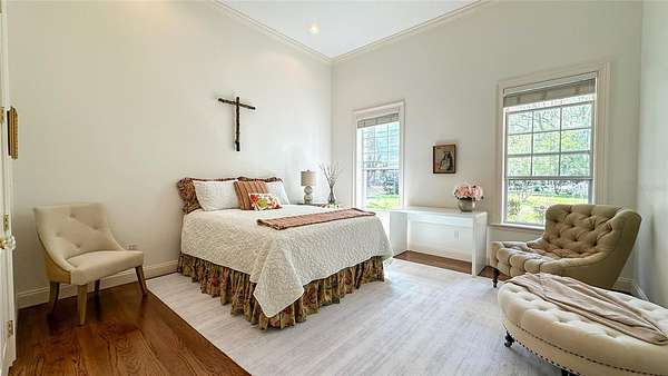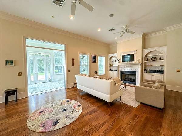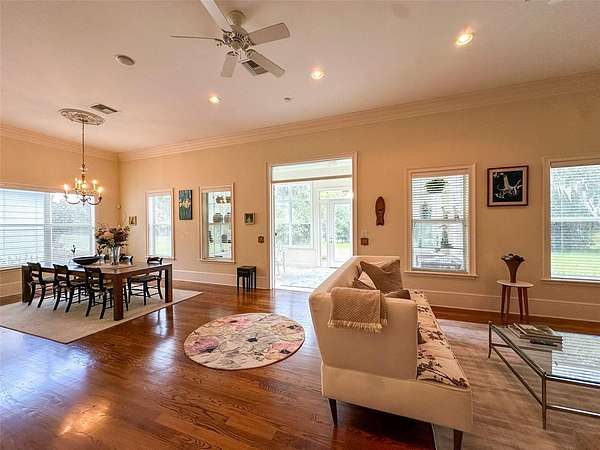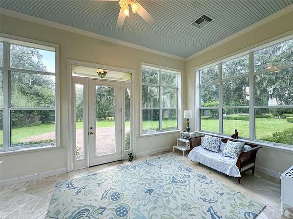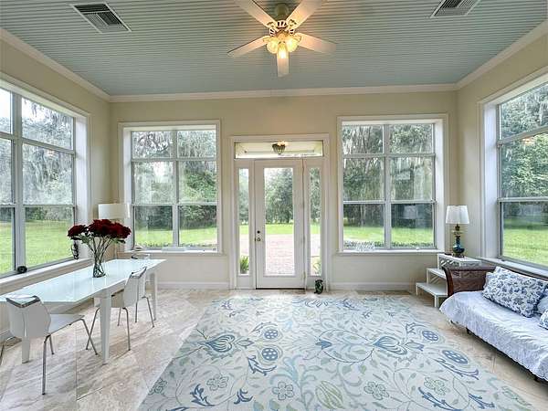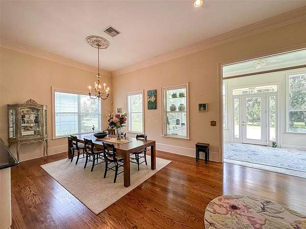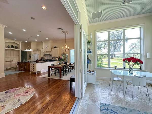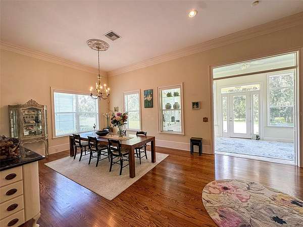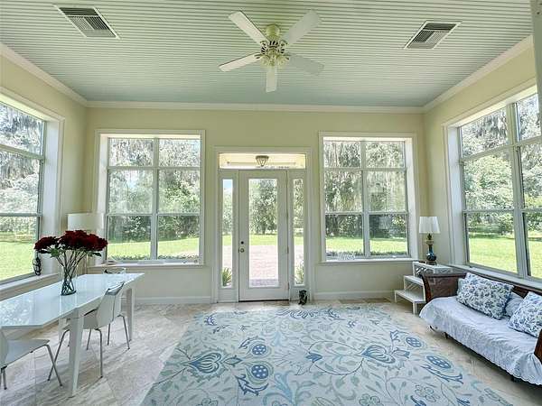 A tranquil sanctuary where calm and luxury meet, traditionally designed custom 10 acre home is for rent in the highly desirable area of historical Micanopy/McIntosh. This peaceful tree habitat with lush manicured landscaping and pasture will give you a dark sky to see the stars without the city’s light pollution and surround you with serenity. Upon your entry into the brick gated property, you will see a meticulously maintained garden surrounded by azaleas, camellias, lilies, crepe myrtles and plentiful natural Florida fauna. The gardens are maintained by a commercial irrigation system providing continuous plant prosperity. While 5 of the acres are blissfully planted, the additional 5 acres is fenced pasture with Spanish-moss draped oaks. The property features: oak floors, high 12 foot ceilings, ceiling medallions, farm sink, security system, zoned two HVAC system, zoned water heating, can-lighting systems, custom ironwork, luxury floor and ceiling moldings. Kitchen amenities include: custom cabinets, granite, built-in bookcases, hand-painted custom backsplash tiles, double oven, butcher Block Island, large pantry, 6 burner gas stove, and built-in stove faucet. Historic Micanopy/McIntosh area gives you a relaxing 10 minute commute via N US-441 with all the benefits of a beautiful ride up Payne’s Prairie Nature Highway! 25 minute commute to either Gainesville or Ocala! Short term rentals will be considered at a seasonal rate.
