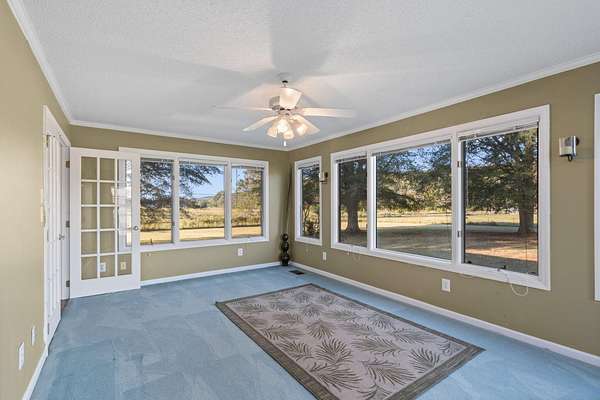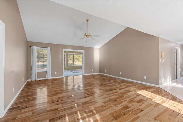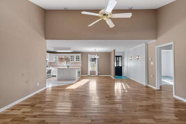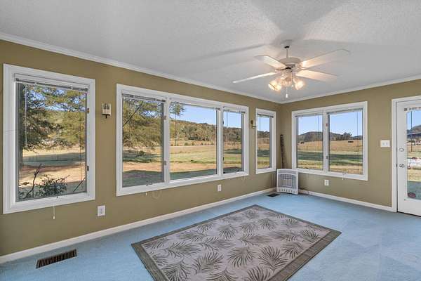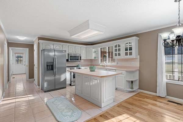Escape to peaceful, country living in this charming 3 bedroom 2 bath ranch home nestled on 2 flat, cleared acres surrounded by open farmland. Step inside to an open floor plan that welcomes you with beautiful hardwood floors in the living & dining areas, creating a warm and inviting space. The kitchen offers plenty of counter space and a convenient bar for casual dining, extra prep space or entertaining. The split bedroom design ensures privacy, with a spacious primary suite featuring a huge bathroom and walk-in closet. A dedicated laundry room adds everyday convenience, while the sunroom - with its wall of windows - provides the perfect spot to relax and take in the tranquil farm views. Enjoy peace of mind with a new HVAC unit and a newer roof, plus the added versatility with an RV septic hook-up in the backyard - perfect for guests or travel enthusiasts. Experience the best of rural living with plenty of room to roam, all just a short drive from town amenities.