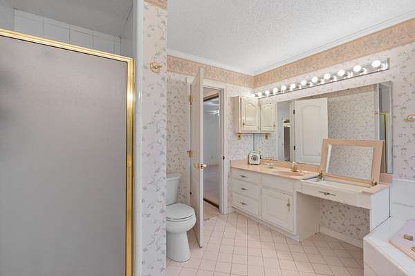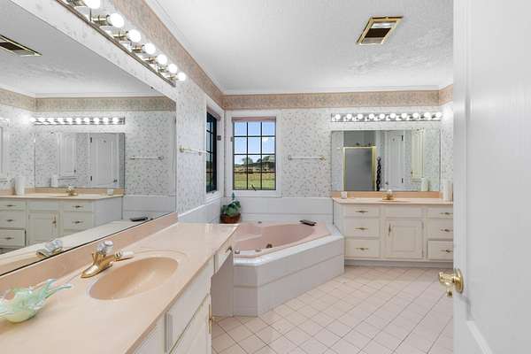 - Bathroom Mirror(s), Cathedral Ceiling(s), Ceiling Fan(s), Double Vanity, Eat-In Kitchen, Kitchen Island, Open Floorplan, Soaking Tub, Split Bedrooms, Walk-In Closet(s), Walk-In Shower