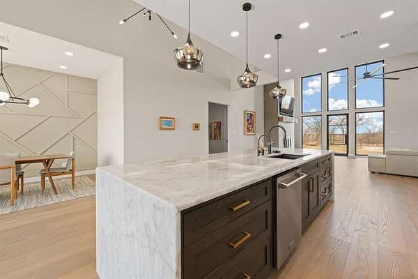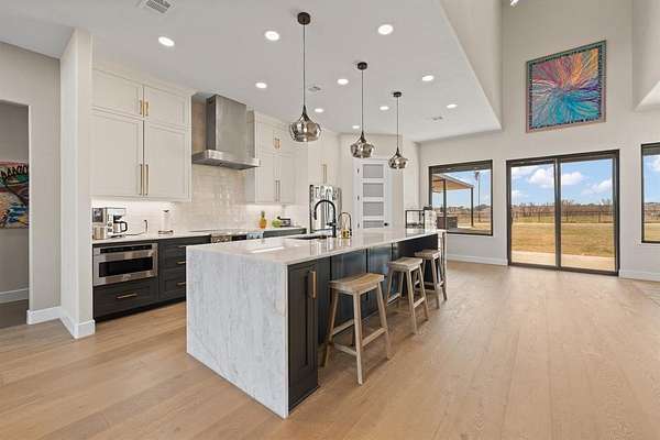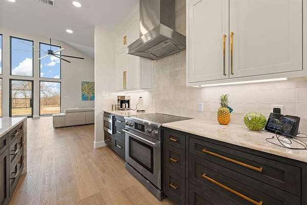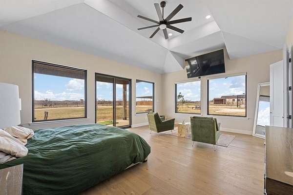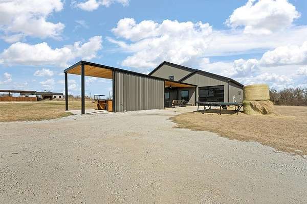 Experience modern country living at its finest with this stunning custom-built home situated on almost 3 acres in Godley. Designed with both luxury and functionality in mind, this impressive 3-bedroom, 3.5-bath property offers an exceptional blend of contemporary design, open space, and outdoor entertaining. From the moment you arrive, the striking exterior and expansive setting create a lasting first impression. Inside, soaring ceilings, abundant natural light, and expansive windows showcase the surrounding Texas countryside while creating a bright and welcoming atmosphere. The open-concept living area features a dramatic fireplace and seamless flow into a chef-inspired kitchen complete with a large waterfall island, custom cabinetry, designer finishes, and ample space for entertaining. The spacious primary suite provides a private retreat with spa-like ensuite bath, dual vanities, soaking tub, and oversized walk-in shower. Secondary bedrooms offer generous space and flexibility for guests or family, each thoughtfully designed for comfort and privacy. Step outside to enjoy a true outdoor living experience. The covered patio and custom outdoor kitchen create the perfect space for entertaining, relaxing evenings, or enjoying peaceful country sunsets. The property offers plenty of room for animals, hobbies, or future expansion, along with a large shop-garage space ideal for vehicles, equipment, or creative use plus an upstairs space currently used as a salon but could be used as anything you want it to be . Covered area to park your outdoor vehicles such as tractors, mowers , etc plus a lean to for shelter for your horses or livestock Located in the highly desirable Godley isd, this property combines the tranquility of rural living with convenient access to nearby amenities and located not far from the Chisholm Trail Parkway If you’ve been searching for a modern ranch-style home with acreage, luxury finishes, and exceptional indoor-outdoor living — this one is for u