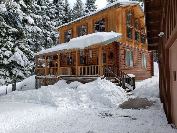 Rustic Elegance in Lostine Canyon! Nestled within the sought after Lostine Canyon Community, this stunning log home offers a blend of rugged mountain character and modern comfort. Surrounded by breathtaking peaks, this property serves as a sanctuary for those seeking the true Eastern Oregon lifestyle!! The expansive covered deck is the perfect vantage point for morning coffee or evening star gazing. Living in the Lostine Canyon means having hiking, fishing, and beauty right outside your door. Whether you are looking for a full-time residence or a high-end seasonal retreat, this home captures the spirit of Wallowa County living at its finest. This property has an oversized garage and carport and the option of a separate living area with outside entrance. The 4 ft crawl space offers extra storage and easy access. All railings were custom made from logs off of the property. A new generator, installed in 2024 that kicks on if the power goes out offers extra comfort. This gorgeous fire-wise community with community water source is approximately 1 mile from the Wallowa-Whitman National forest entrance. This Community has 2 shared recreational lots for extra enjoyment. Come check out this true Gem in Wallowa County!