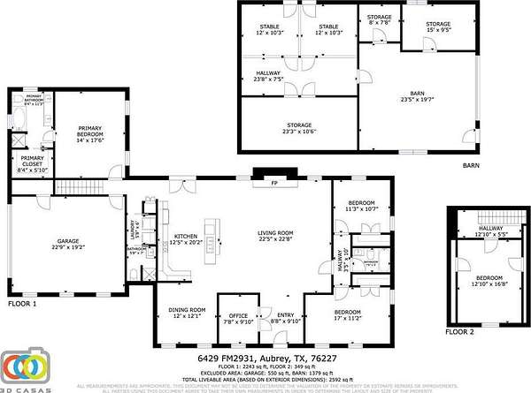 Nestled on 2.5 beautiful acres in Aubrey, this serene country escape offers the perfect blend of comfort and rural charm. The spacious home features a bright, open layout with 4 bedrooms and 3 full bathrooms. The primary suite provides plenty of space with a large walk-in closet and a private bath complete with soaking tub and separate shower. Outside, enjoy peaceful views from the covered patio overlooking wide-open pastures. The property also features a fenced yard and a versatile barn with stables, storage areas, and a tack room — ideal for horses, livestock, or hobby farming. Experience the best of country living with the conveniences of nearby Aubrey and Denton just minutes away.