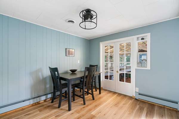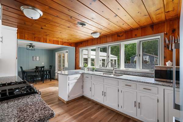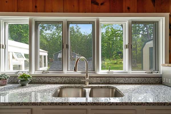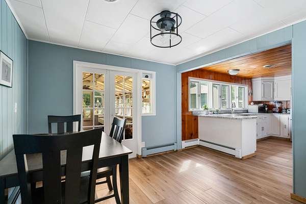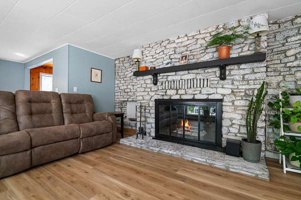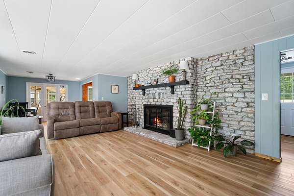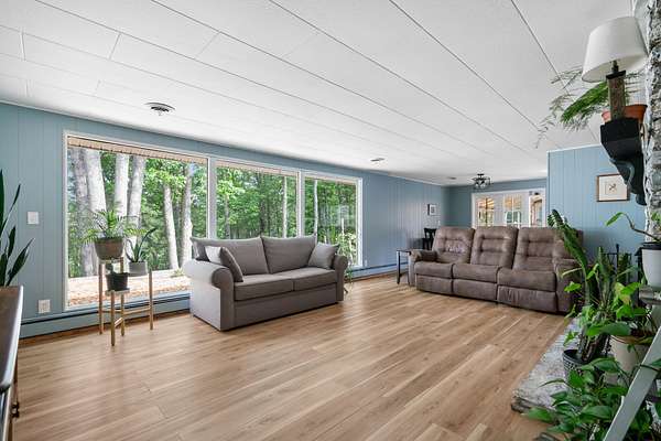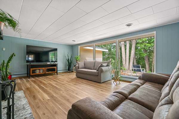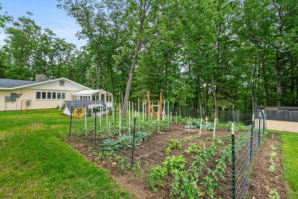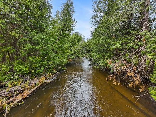 Walk down to the Sturgeon River and enjoy the peaceful sound of the water flowing down your 203 feet of frontage. Sitting atop the bluff, you'll find a tastefully updated 3-bedroom, 2-bath home featuring a bright, airy kitchen, a generous primary suite, and a living room with a natural fireplace and stunning bluff views. Walk directly out of the house into your very own greenhouse with lots of room for flowers and vegetables. When they are ready to move outside, a designated fenced in area awaits, a gardener's dream. Recently added is a 12'x16' shed for extra storage space. Have the convince of being just minutes to Indian River but have the peace and tranquility of life on the Sturgeon River.