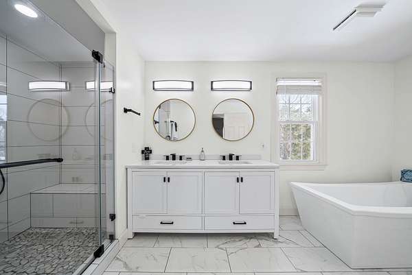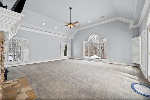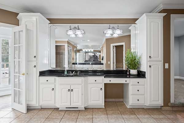 Step inside to discover soaring ceilings, expansive living areas, and exquisite finishes throughout. The primary suite is a sanctuary of its own, featuring a spa-inspired bath with a fireplace ambiance, expansive closets, vanity areas, heated floors, and tranquil views of the surrounding greenery. Outdoors, your private oasis awaits. Dive into the inground pool while remaining securely surrounded by a well built enclosure. Shoot hoops on your basketball court, perfect your swing in the professional-grade batting cages. Whether you're entertaining guests, enjoying a quiet evening under the stars, the lush wooded backdrop provides the ultimate in seclusion and natural beauty.