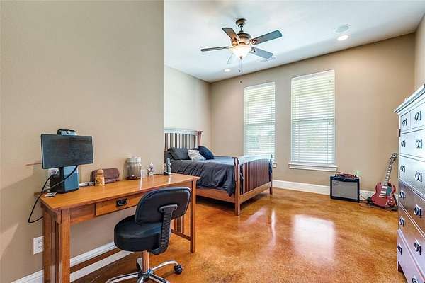 Escape to complete privacy with this 48+ acre wooded retreat in Telephone, TX, accessed by a quarter-mile driveway and featuring a serene spring-fed pond—ideal for hunters or anyone seeking a private getaway. The 4,682 sq. ft. home offers stained concrete floors throughout, a theater room, and a game room with wet bar, creating the perfect balance of comfort and entertainment. Whole-home speakers are installed in all living areas and bedrooms, while the fully floored, foam-insulated, and climate-controlled attic houses a network rack wired to every room. A whole-home reverse osmosis water system and whole-home generator provides peace of mind. The primary suite includes an exercise room and a secure vault-style storm shelter, while outdoor living is enhanced by a screened-in patio. The oversized garage doubles as a spacious workshop. Additional highlights include a tower for enhanced telecommunications and power and internet access points placed throughout the driveway. A rare blend of security, luxury, and recreation in a truly private setting.