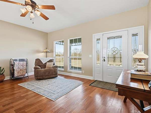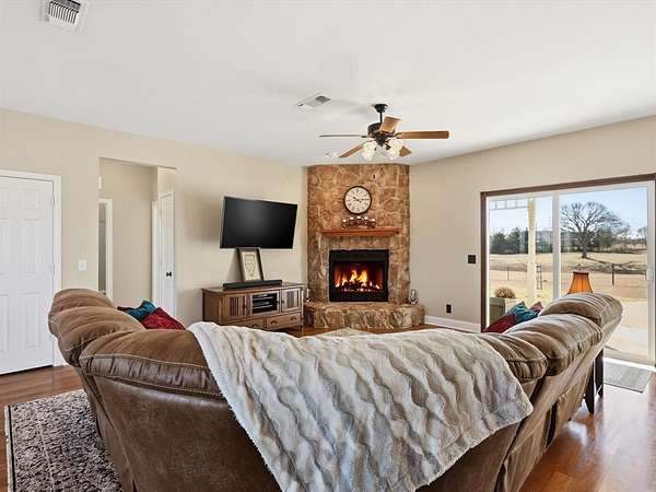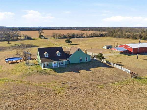 Exceptional investment opportunity just minutes from Bois d'Arc Lake boat ramps! This versatile property offers a rare combination of residential comfort and future commercial potential. The main entrance to the home is off County Road 2992, while the opposite side of the property has approximately 735 feet of frontage along Highway 82. Per TxDOT, a culvert and additional entrance from Highway 82 may be added, creating outstanding visibility and access. Located outside the Bois d'Arc Lake buffer zone, this unrestricted and unzoned property provides flexibility for a variety of uses. Ideal for a buyer looking to develop commercial frontage along Hwy 82 while maintaining a private residence, farm, or homestead on the remaining acreage. Ag-exempt with no known restrictions. The very well-maintained ranch style home features 3 bedrooms and 2 bathrooms, a spacious living area with a stone gas fireplace, and a beautiful kitchen offering plenty of storage, granite countertops, and a walk-in pantry. The home has a BRAND-NEW AC UNIT AND HOT WATER HEATER! The home has also been freshly painted, and the septic system recently pumped. Enjoy peaceful Texas sunsets from the covered front and back porches. Additional property highlights include an above-ground pool with wood deck and pergola, a 40x60 pole barn with stalls, electricity, and water, and a 20x30 carport for extra parking. The land is fenced and includes a seasonal pond, dedicated RV parking with 30-amp service, and a separate septic system ideal for guests or future expansion. With prime highway frontage, proximity to Bois d'Arc Lake, and endless development possibilities, this property is a standout opportunity! Ask about the exclusive lender incentive offered!