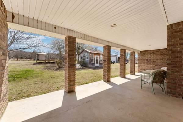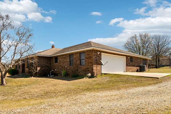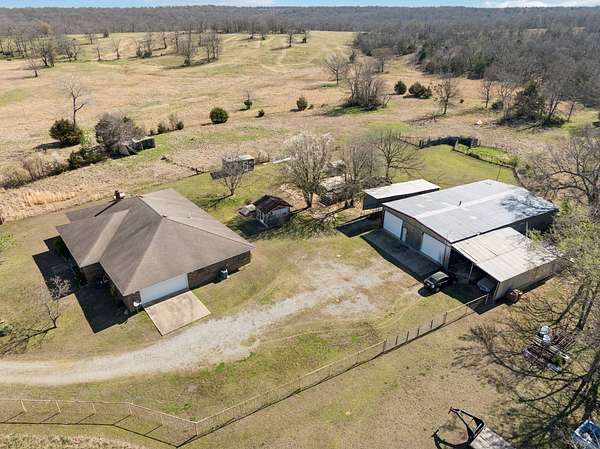 This charming 4-bedroom, 3-bathroom home with 40x70 shop is a must see! Property boasts stunning views, mature trees on approximately 5 acres of land, just under 5 miles from beautiful Lake Eufaula. The front foyer leads into the living room with a cozy wood burning fireplace. Just off the living room are both the formal dining and office space. Down the hall are your 3 spacious guest bedrooms, and bathrooms. Additionally, from the living room you have direct access to your covered patio which overlooks your backyard space, perfect for those summer gatherings! You will find your primary suite on a split bedroom plan just on the other side of the home. Your large master bedroom boasts a walk in closet and an en suite bathroom, including separate shower, vanities and additional closet space. As you go back towards the main living area, you are greeted by your kitchen which has plenty of cabinets, granite counters, and overlooks the breakfast nook area. Just off the Kitchen is your laundry room and entry to your 2-car garage. With lots of living space, shop, approximately 5 acres and just minutes from the lake, this home is sure to impress. Call today to schedule your showing!