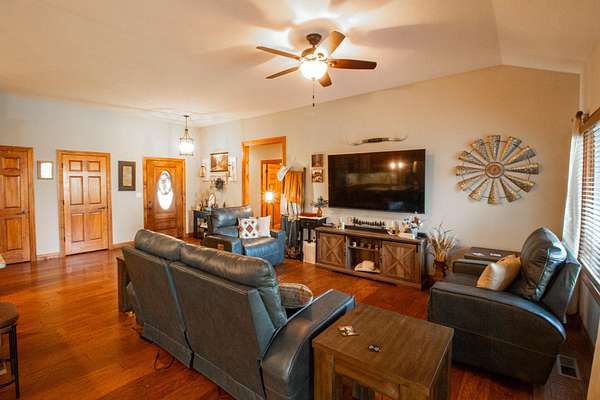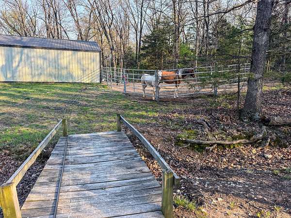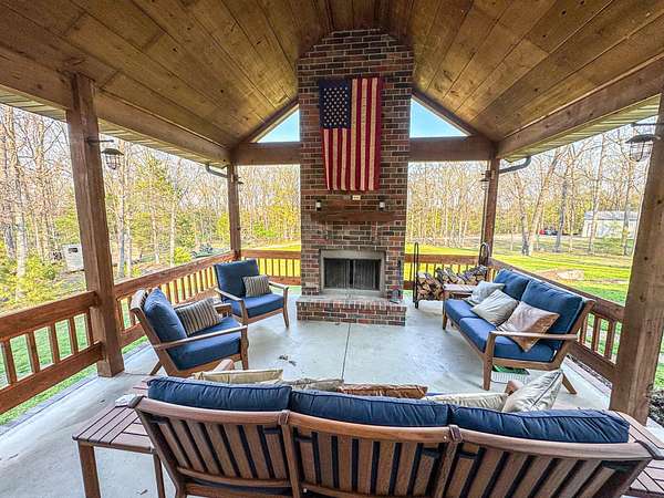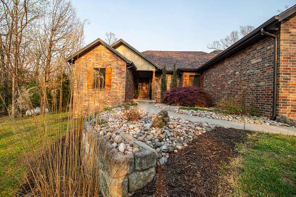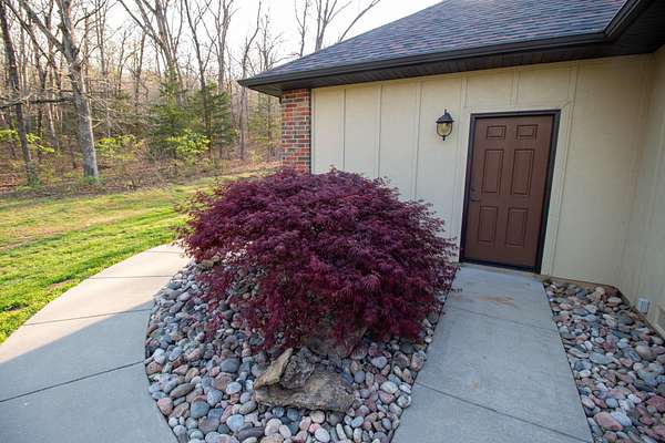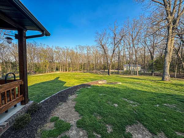 Welcome to Caden Place in Fair Grove--where custom craftsmanship meets peaceful country living on 11 private acres. Originally built as the builder's personal residence, this thoughtfully designed home offers privacy, natural beauty, and exceptional quality.A freshly sealed, secluded drive leads to meticulously designed, low-maintenance landscaping with large river rock, a side-entry garage,ample guest parking, and a brand new Duration shingle roof! A charming covered front porch creates a warm welcome.Inside, enjoy an airy layout with tall ceilings and a split-bedroom floor plan. The living, kitchen, and dining areas flow seamlessly, ideal for everyday living and entertaining. The kitchen features custom knotty beech cabinetry, a large island with storage, tile backsplash, granite countertops, and a functional design. Storage is abundant with an oversized pantry and deep auxiliary closets.The home includes a spacious laundry room and convenient half bath off the main living area. The private primary suite accommodates a king-size bed and features a spa-like bath with a large walk-in shower with dual shower heads, dual vanity storage, and a generous walk-in closet.On the opposite side, two additional bedrooms offer hardwood floors, large closets, and a full bath--perfect for family or guests.Step outside to a covered patio with a wood-burning fireplace overlooking wooded acreage. The land features trails, wet-weather creeks, and mature hardwoods, including a striking oak tree--ideal for outdoor recreation.A shop building with a concrete floor provides space for storage, hobbies, or livestock (fencing needed). An additional drive from Larissa offers easy access.Two included front residential lots add flexibility for privacy, future building, or resale.This rare property blends seclusion with convenience in one of Fair Grove's most desirable areas--a truly unique opportunity to own a custom home designed for comfort, quality, and lifestyle.