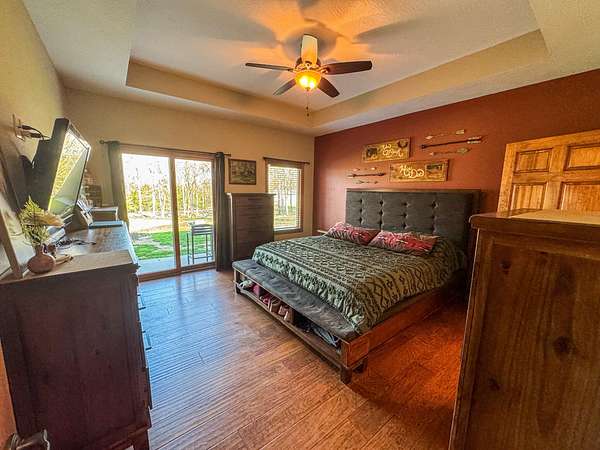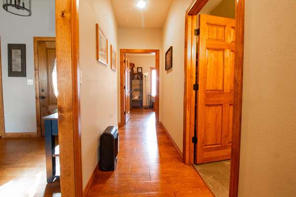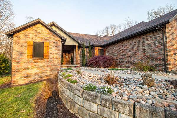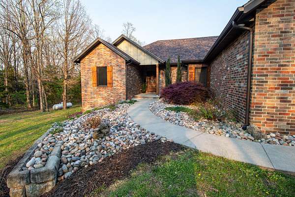 Welcome to Caden Place in Fair Grove, where custom craftsmanship meets peaceful country living on 11 private acres. Originally built as the builder's personal residence, this thoughtfully designed home offers privacy, natural beauty, and exceptional quality.A freshly sealed, secluded drive leads to meticulously designed, low-maintenance landscaping with large river rock, a side-entry garage,ample guest parking, and a brand new Duration shingle roof! A charming covered front porch creates a warm welcome.Inside, enjoy an airy layout with tall ceilings and a split-bedroom floor plan. The living, kitchen, and dining areas flow seamlessly, ideal for everyday living and entertaining. The kitchen features custom knotty beech cabinetry, a large island with storage, tile backsplash, granite countertops, and a functional design. Storage is abundant with an oversized pantry and deep auxiliary closets.The home includes a spacious laundry room and convenient half bath off the main living area. The private primary suite accommodates a king-size bed and features a spa-like bath with a large walk-in shower with dual shower heads, dual vanity storage, and a generous walk-in closet.On the opposite side, two additional bedrooms offer hardwood floors, large closets, and a full bath--perfect for family or guests.Step outside to a covered patio with a wood-burning fireplace overlooking wooded acreage. The land features trails, wet-weather creeks, and mature hardwoods, including a striking oak tree--ideal for outdoor recreation.A shop building with a concrete floor provides space for storage, hobbies, or livestock (fencing needed). An additional drive from Larissa offers easy access., future building, or resale.This rare property blends seclusion with convenience in one of Fair Grove's most desirable areas, a truly unique opportunity to own a custom home designed for comfort, quality, and lifestyle. The 2 residential lots neighboring it can be purchased w/ the home for $700k