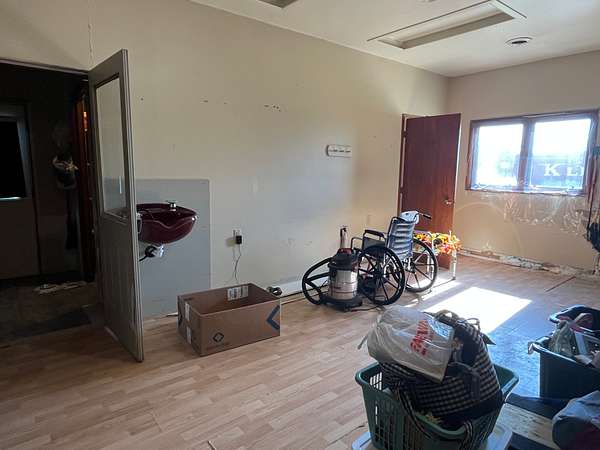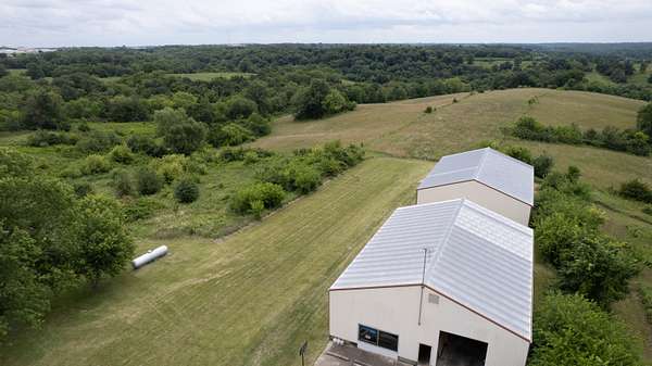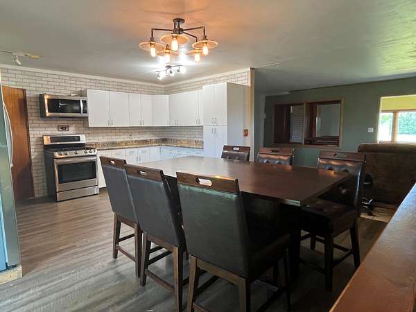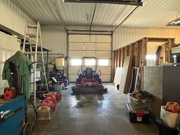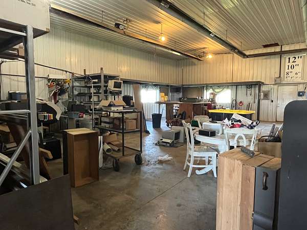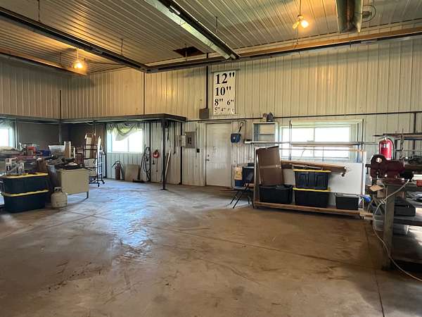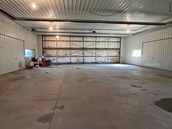 The second outbuilding, built in 1989, also measures 46x60x14. It features finished office space, a 220-amp plug-in, an overhead airplane hangar door, and a concrete patio, offering excellent functionality for professional or recreational use. An older barn with electricity provides additional storage or workspace.