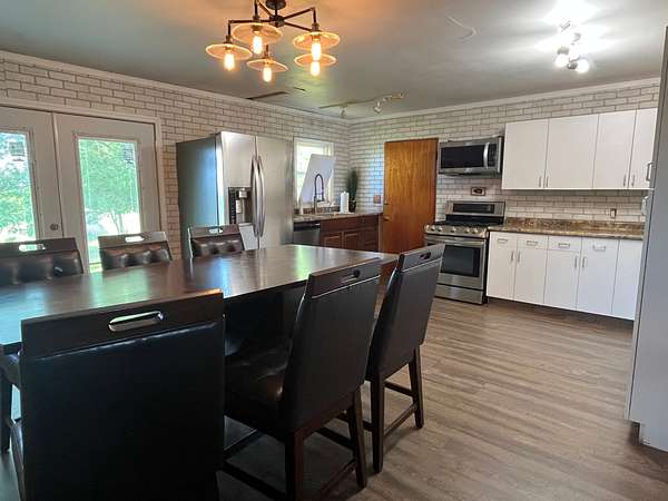 The main floor features a spacious living room, a dining area, and a nicely remodeled kitchen.