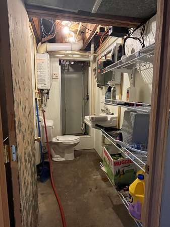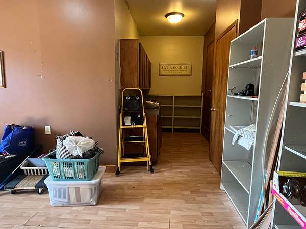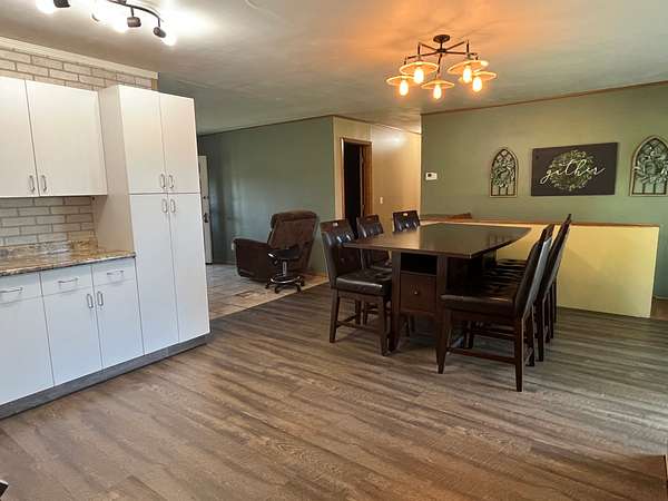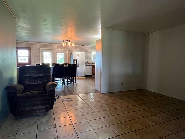 An enclosed front porch currently serves as a storage space. Down the hallway is a full bathroom and three bedrooms, with one non-conforming room created by a non-load-bearing wall. The lower level boasts a second living area, complete with a kitchenette and bar area, and a walkout to the back patio, ideal for entertaining or extended living arrangements. The home includes a separate entrance to a multi-use space with a laundry area and 1/2 bathroom that could be converted into a garage and was previously used for business purposes.