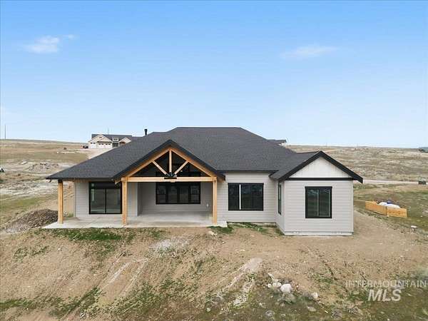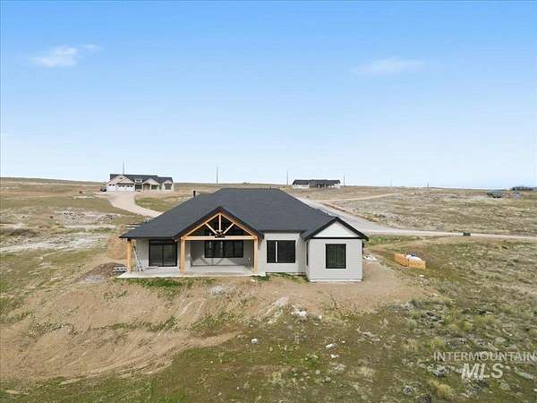 Experience the best of Idaho rural living in this exceptional, brand-new custom home set on 6.26 acres with sweeping views of the Owyhee Mountains and surrounding farmland. Designed for both comfort and function, this single-level residence features 10' ceilings throughout, an open and thoughtfully designed split-bedroom floor plan, and expansive windows that capture the breathtaking scenery from nearly every room. The gourmet kitchen offers quartz countertops, custom cabinetry, premium appliances, and a large center island-perfect for everyday living or entertaining. The private primary suite is a true retreat with a spa-inspired bath including a soaker tub, walk-in shower, and generous walk-in closets. Step outside to enjoy peaceful mornings and unforgettable sunsets from the covered patio while taking in wide-open space and uninterrupted views. With ample room to build a shop, bring large animals, and create your ideal rural lifestyle, this property offers rare flexibility and freedom without sacrificing quality or design. A unique opportunity to own a slice of Idaho with space, privacy, and stunning natural beauty.