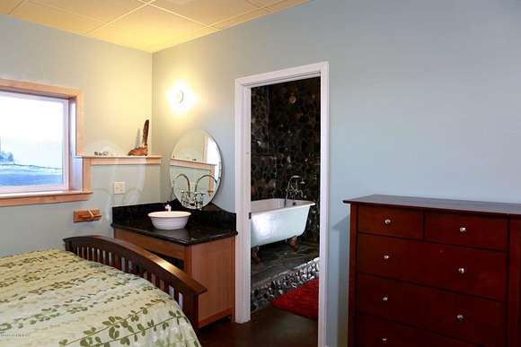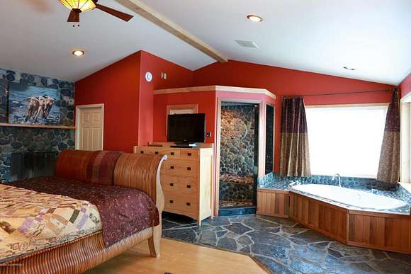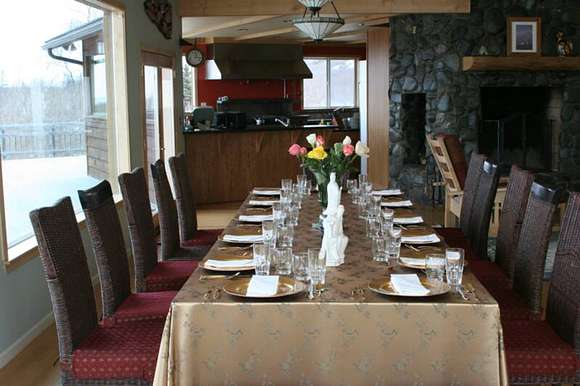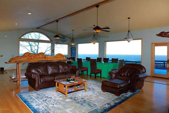 5 Star Dinning & Lodging 5,500sf Main Lodge Home on 6 Oceanfront acres. "ONE OF THE FINEST PROPERTIES KENAI PENINSULA" The Great House Lodge on Chautauqua's grounds Located on the Kenai Peninsula, 6 wild beautiful acres known as Chautauqua, near the small quaint town of Ninilchik. Dinning clients can make an evening of it and spend the night in one of the beautiful guest rooms. With each visit to Chautauqua, it's clients delight in the great amenities showcasing the exceptional service provided to each and every guests. Once you enter the 5,500 square foot Great House Lodge you are captivated by its spaciousness, warm woods and furnishings masterfully hand crafted by owner.