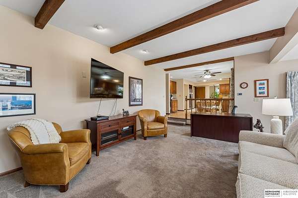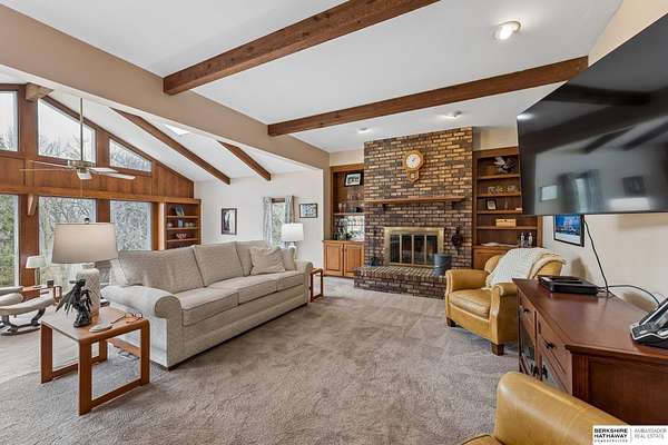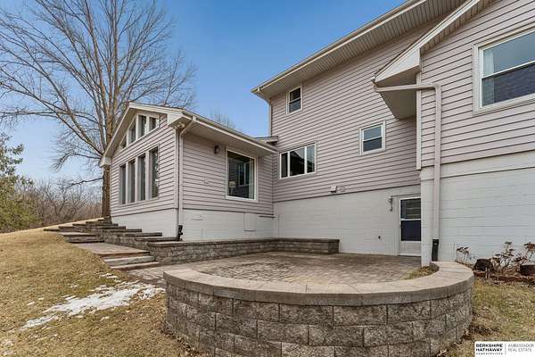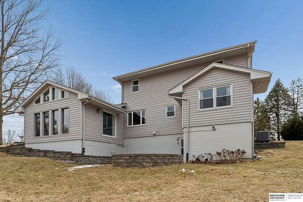 Shona Emsick, M: 402-968-3629, shona.emsick@bhhsamb.com, https://www.bhhsamb.com - Your 4-Acre Private Retreat Awaits! Nestled on a quiet cul-de-sac, this setting provides peaceful living with expansive wooded views and a true sense of retreat. The spacious 4-bedroom, 4-bath walkout home has been thoughtfully updated with recent kitchen and bathroom remodels, offering modern finishes while maintaining warmth and character. Large living spaces are punctuated with a stunning vaulted great room filled with natural light that showcases the peaceful wooded view behind you. The walkout lower level offers versatile space. Outdoor living truly shines with an expansive paver patio and walkway that beautifully highlights the exterior of the home - perfect for showcasing potted plants and seasonal flowers. The 1,200 SF outbuilding features concrete floor, skylights, water, and power. There are dual water sources, city and well. If you've been searching for an acreage with privacy, an updated int