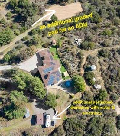 Short Sale Approved + Huge Price Correction! Experience resort-style privacy in this custom 2013 luxury estate set on 7.45 acres with unobstructed panoramic views. This modern 4 bed, 3 bath, 3,300+ sq ft home features an open-concept great room, entertainer's kitchen with wet bar, and a spectacular primary suite with its own deck, sauna, and elevator access. High-quality construction includes upgraded electrical/plumbing, fire sprinklers, owned solar, a private well, and a 10,000-gallon water tank.The oversized 3-car garage offers a drive-through door to the backyard--ideal for a workshop, gym, or expanded living. A detached workshop with dual 50-amp RV hookups adds versatility for RV storage, hobbies, or potential conversion. The second graded lot provides an excellent opportunity for an ADU or additional dwelling. Located minutes from Sycuan Resort and Alpine, this estate offers ultimate privacy, views, and endless future potential.