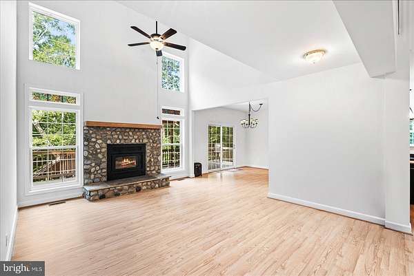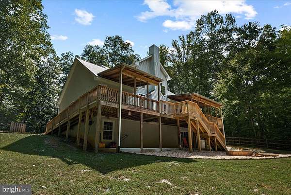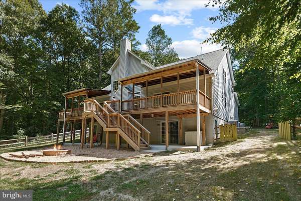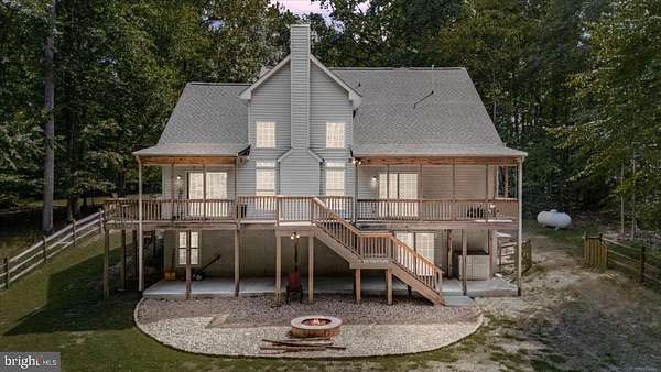 Welcome to this beautifully renovated 4-bedroom, 2 full and 2 half bath home set on 4 private acres, offering the perfect blend of space, comfort, and modern updates. From the inviting covered front porch to the expansive backyard and thoughtful interior design, this property is ideal for both everyday living and entertaining. Step inside to a dramatic two-story foyer that flows into a bright and open floor plan. The two-story family room is the heart of the home, anchored by a stunning stone wood-burning fireplace and overlooked by a loft and upper seating area. A dedicated main-level office provides the perfect space for work or study. The kitchen is a delight, featuring all-new stainless steel appliances (2023), granite countertops, a breakfast bar, 58-inch cabinetry, pantry, and an adjacent dining room. Sliding glass doors lead to the covered back deck, creating a seamless indoor-outdoor living experience. The main-level primary suite is a private retreat with a 5-piece en suite bath, walk-in closet, and direct access to the covered deck-perfect for morning coffee or evening relaxation. Upstairs, you'll find three additional bedrooms, a full bath, and versatile loft and seating areas overlooking the family room below. The full unfinished basement offers endless potential, with a rough-in for an additional bathroom and walk-out access to a covered patio and firepit area. Renovation Highlights: New roof Two new HVAC units Whole-house generator Fresh paint & new carpet New gravel driveway Additional features include a fenced-in backyard, 2-car attached garage, and plenty of outdoor space for recreation or gardening.