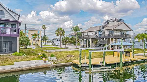 Build your dream coastal retreat on this cleared waterfront lot with direct Gulf access in the heart of Hudson, Florida. Offering 60 feet of saltwater canal frontage with a solid concrete seawall, this south-facing property is ideally positioned at the canals Gulf opening—providing expansive views of the open Gulf and mangroves while providing wave protection. Enjoy peaceful morning sunrises from your dock as the sun peaks down the canal or take a short 150-yard evening stroll for spectacular sunset views over the Gulf. This is truly the best of both worlds. Boaters will appreciate the deep, tidal canal water that naturally churns with each tide, helping maintain depth and water quality. The current owner previously kept a 32-foot inboard boat docked here, and the existing electric davits (installed in 2010) and boat lift were designed to accommodate another sizeable vessel. The property features a stationary dock with a charming Tiki Hut, roof-covered deck area for relaxing or entertaining, and a convenient fish cleaning station for preparing your fresh catch. Utilities are already in place with water and electric service on site, saving time and expense when planning your build. Impact fees were previously paid for a small home, offering additional potential value. With no HOA or deed restrictions, you have the freedom to design and build the coastal home you’ve always envisioned. From your backyard, enjoy frequent visits from dolphins, stingrays, seabirds, and ducks. A short boat ride takes you to prime fishing grounds, water sports, or peaceful sunset cruises into the Gulf. Nearby destinations include Anclote Island, Hudson Beach, local marinas, waterfront dining, and SunWest Park’s spring-fed beach and recreation area. Conveniently located near shopping, dining, medical facilities, and major roadways including the Suncoast Parkway, with easy access to Tampa International Airport. Whether you’re envisioning a full-time waterfront residence or a seasonal getaway, this exceptional Gulf-access lot offers the lifestyle you’ve been waiting for.