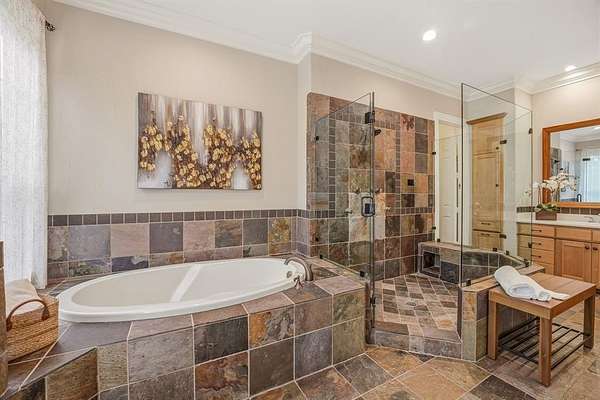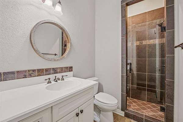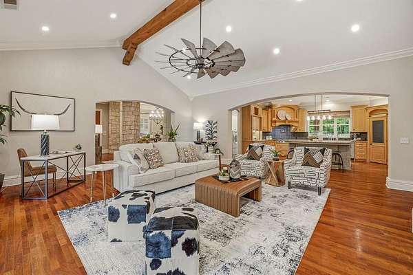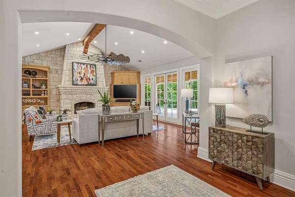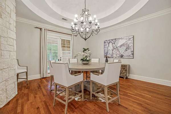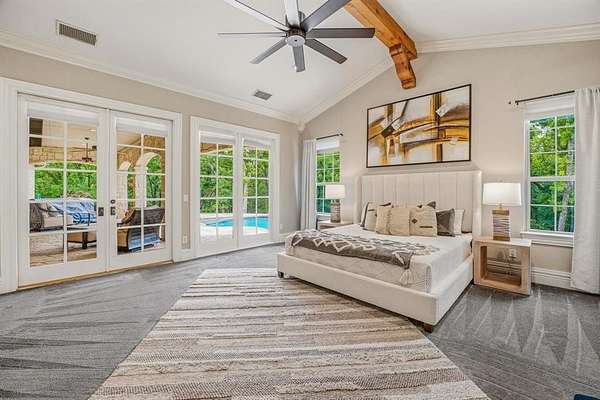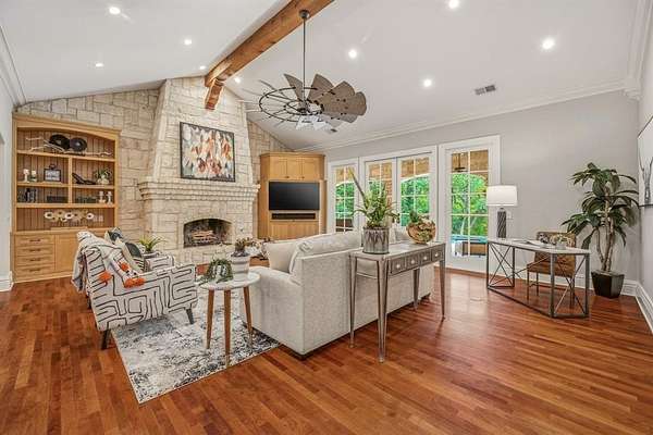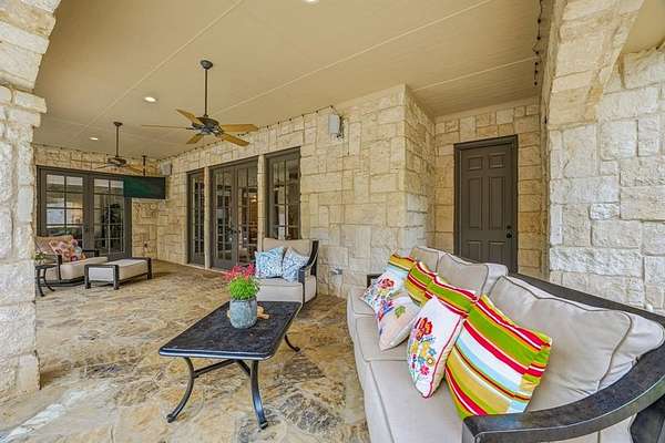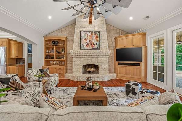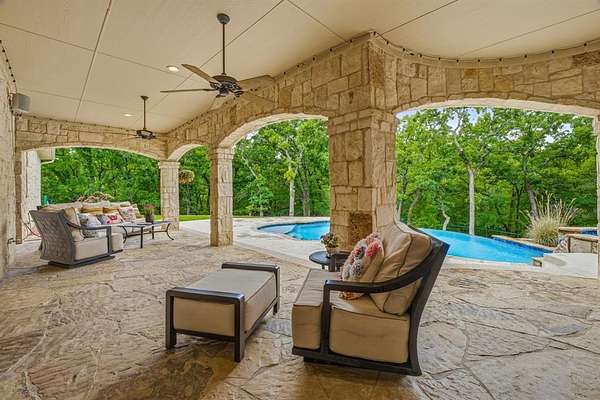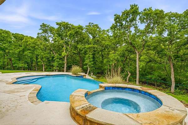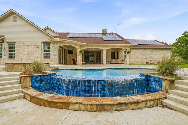 Hidden at the back of a quiet culdesac in sought-after Butterfield Junction, this custom stone home delivers a rare combination of privacy, nature and modern comfort on approximately 2.2 heavily wooded acres with serene creek and woodland views. Thoughtfully updated throughout, the open, inviting floor plan offers approximately 3,878 square feet with light-filled living and dining spaces that capture the views, plus a beautifully finished media and game room loft above the oversized garage with skylights, built-ins and beverage fridge. Outdoor living shines with a covered front porch, expansive rear covered patio, resort style pool and spa with recently refreshed decking and finishes, and private hiking trails that wind through the trees to the Ray Roberts Lake Isle du Bois park trail system for hiking, biking and horses or dogs. Recent improvements include interior and exterior paint, updated bedroom flooring, remodeled front bath, two tankless water heaters, whole-house and under-sink water filtration with UV treatment, and a modern 50amp solar panel system with backup battery for efficiency and peace of mind. Solar panel system is owned. Set in one of Pilot Point’s most desirable wooded communities just minutes from Lake Ray Roberts and North Texas Horse Country, this property lives like a private retreat while still being convenient to Denton, Sanger and the 380 and 35 corridors.