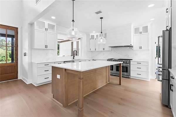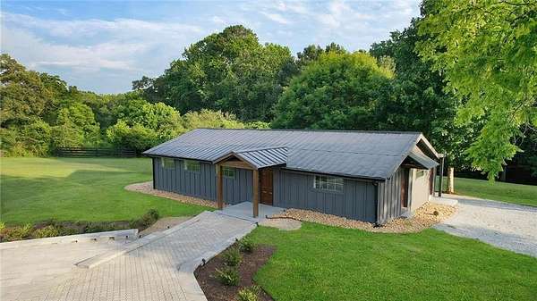 Experience refined country living in this exceptional 2025 custom-built estate on 3.28 picturesque acres in sought-after Cherokee County. Offering 5,007 sq ft, this stunning home features 7 bedrooms and 5 full bathrooms, blending modern luxury with privacy and convenience. Designed for everyday living and entertaining, the home includes two full interior kitchens with stainless steel appliances, quartz countertops, and designer finishes, plus a fully equipped outdoor kitchen with covered patio and grill station. The main-level owner's suite offers a spa-like retreat with a stone soaking tub, while an additional bedroom and full bath are also on the main. Upstairs, you'll find five spacious bedrooms and three full bathrooms. Additional highlights include high-end flooring throughout, custom closet systems, foam insulation, and an EV charging station. A gated entrance leads to a 300+ ft stone paver driveway, three-car garage, guest parking for 10+ vehicles, and RV/boat parking. A 1,200 sq ft converted dairy barn provides flexible space for a guest house, office, gym, or entertainment. Outdoor features include 70+ ft of fire pit areas, low-voltage lighting, and a deep well for irrigation. The fully fenced propertywith five-board horse fencing is approved for a future pool, pavilion, and 2,000-4,000 sq ft ADU, supported by a 3,000-gallon septic system. Located in the desirable Creekview High School district, this one-of-a-kind property offers privacy, space, and luxury-while still being conveniently located to shopping, restaurants, hospitals, and Interstate 575 access to take you anywhere you want to go.