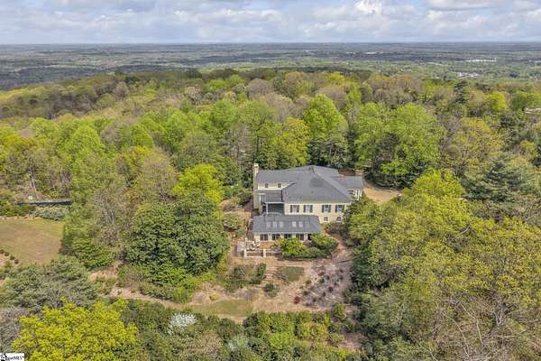 Set atop over nine private acres at approximately 1,600 feet above sea level, this remarkable Paris Mountain estate captures views of both the Greenville skyline and surrounding Blue Ridge Mountains—providing a rare blend of elevation, privacy, and proximity just minutes from downtown. Inspired by the historic Davis House at the base of Stone Mountain, this residence reflects timeless Greek Revival architecture, thoughtfully reimagined for modern living. A gated drive and fully fenced grounds introduce the property, where thousands of established plantings create a natural sense of seclusion and quiet. Inside, 12-foot ceilings and striking arched windows define the main level, filling the home with natural light and framing the landscape beyond. The floor plan unfolds with intention—balancing formal and informal spaces while maintaining a sense of flow suited for both everyday living and larger gatherings, with elevator access connecting the bottom two floors for ease and accessibility. The home features five bedrooms and five-and-a-half baths, with multiple living areas across three levels designed to adapt to a variety of needs. Flexible spaces throughout the home allow for dedicated home offices, fitness areas, creative studios, or quiet retreats—supporting both productivity and relaxation without compromise. A full secondary kitchen on the lower level further enhances the home’s versatility, ideal for extended stays, entertaining, or multigenerational living. One of the home’s most distinctive features is the indoor pool—privately set within its own dedicated space, providing year-round enjoyment in a setting that feels both serene and unexpected. Outdoor living is equally compelling, with expansive patios and balcony spaces designed to take full advantage of the home’s elevation and views. Whether hosting or simply enjoying a quiet morning, these spaces extend the living experience well beyond the interior. Designed with resilience and independence in mind, the property is equipped with a commercial-grade Eaton generator, public water, and septic system—allowing the home to operate with a high degree of self-sufficiency. Over time, the current owners have made extensive improvements across major systems—including HVAC, electrical, plumbing, pest control, and pool maintenance—while also consistently tending to the cosmetic details that preserve the home’s character and day-to-day livability. The grounds reflect years of thoughtful cultivation, including intentionally sourced plantings suited to the region/elevation and a unique globally sourced tea garden that adds both character and a sense of place to the landscape. Paris Mountain itself holds a rich place in Greenville’s history—long regarded as a retreat for those seeking cooler air, natural beauty, and a sense of escape just beyond the city. This property continues with that legacy, providing a setting that feels worlds away while remaining deeply connected to everything Greenville has become.